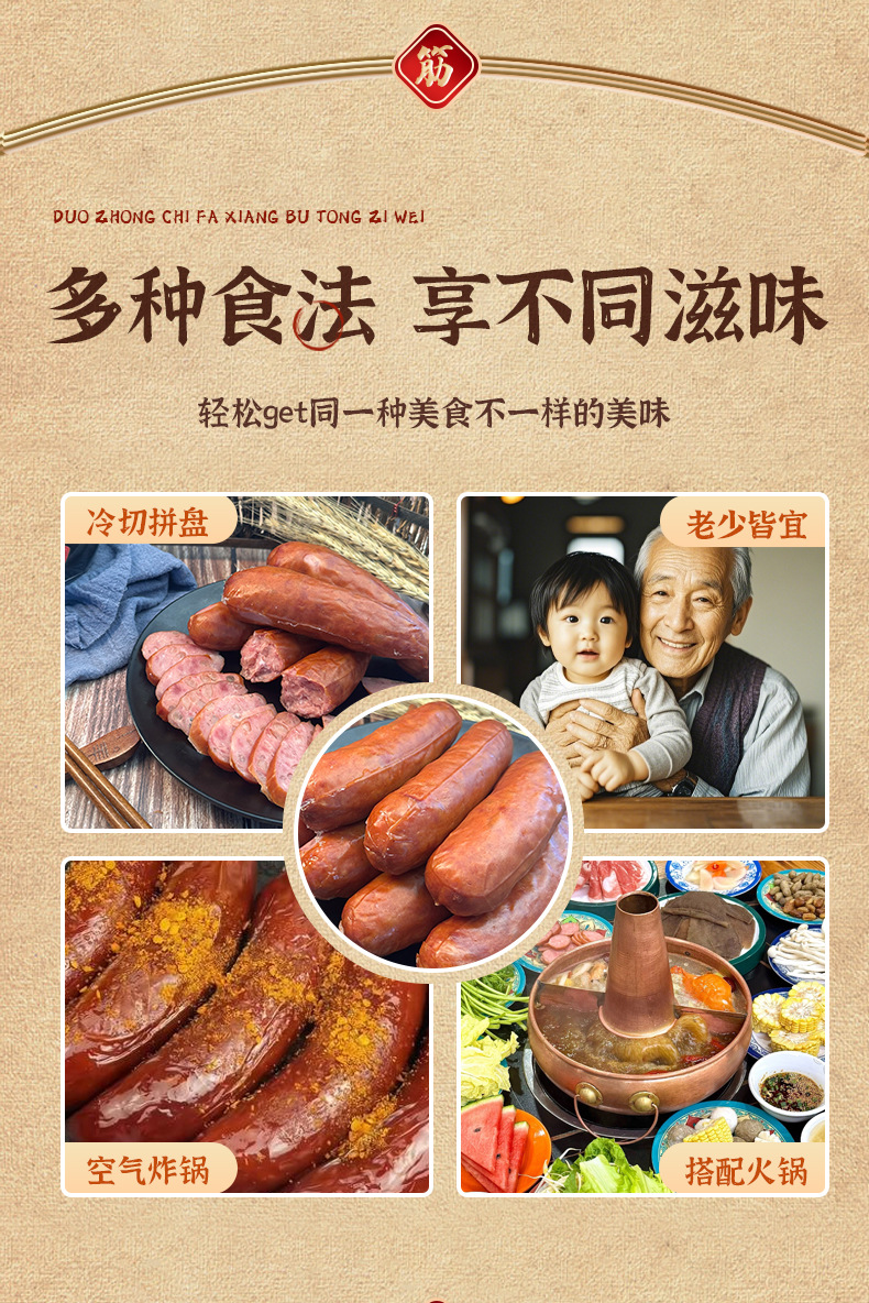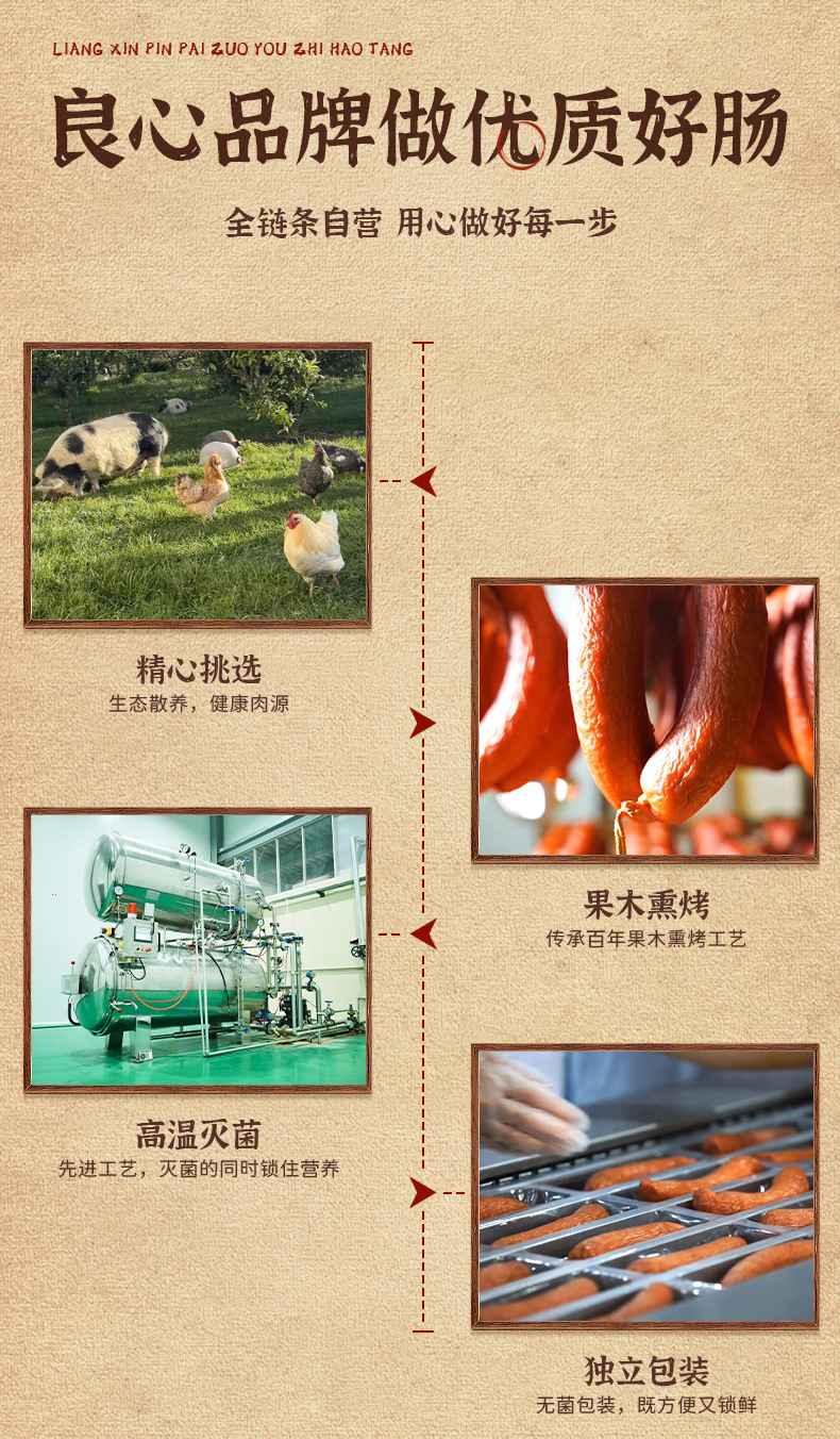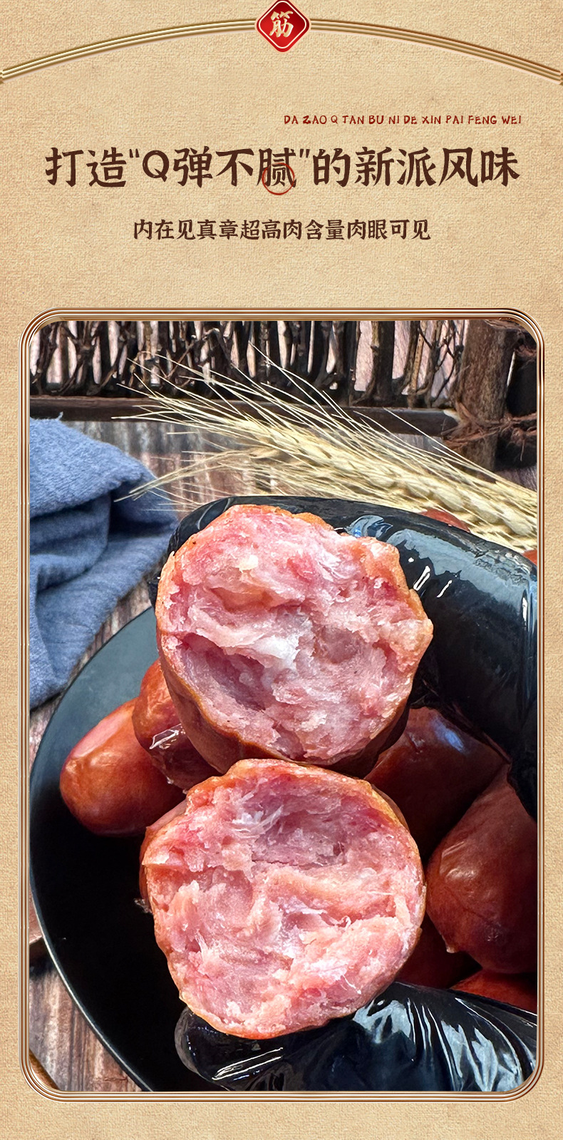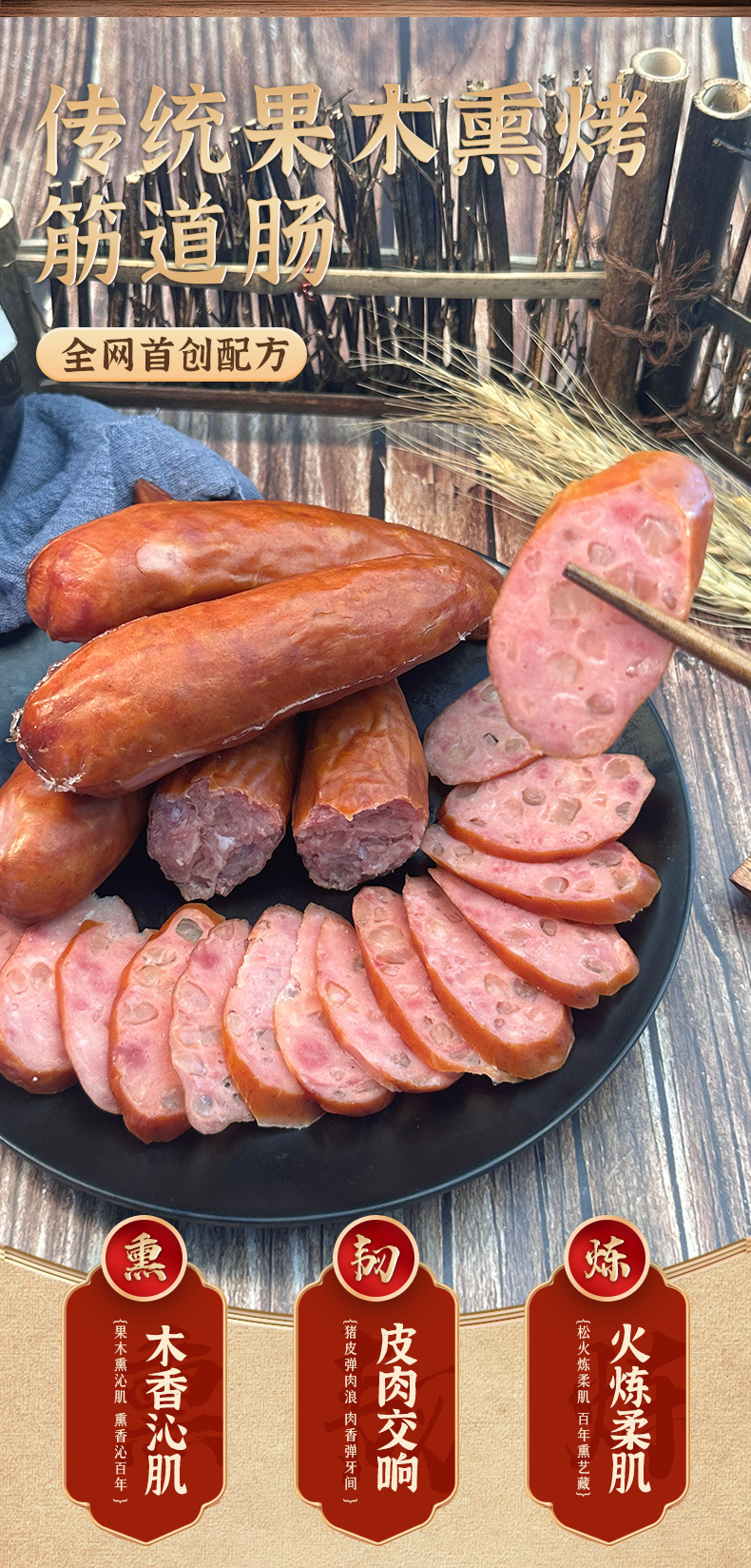 肉筋火腿下酒菜火锅凉菜即食火腿红肠90g果木熏烤筋道大根肉食肠
