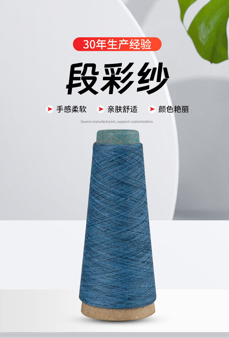 棉涤段染纱32支段彩纱 蓝色双色段彩32S 色纺纱可订纺