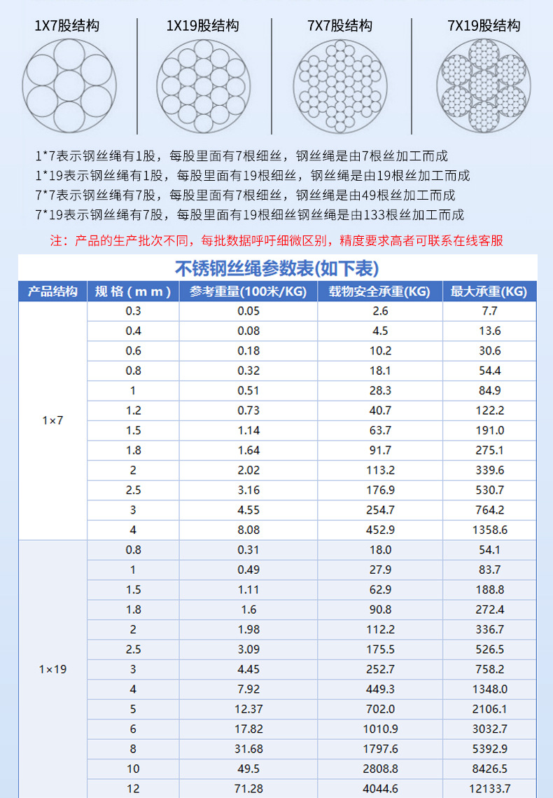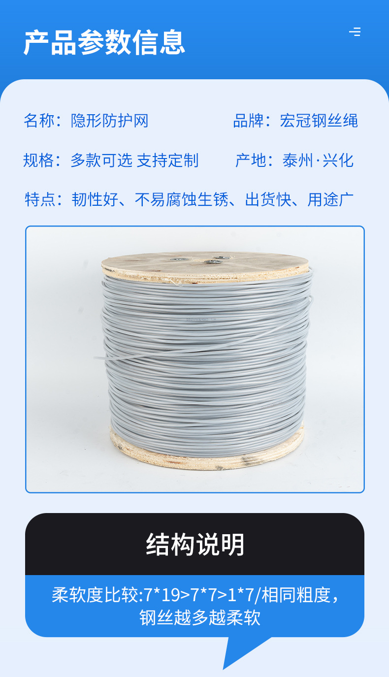 隐形防护网钢丝绳304/201/316不锈钢钢丝绳起重钢丝绳晾衣架配件