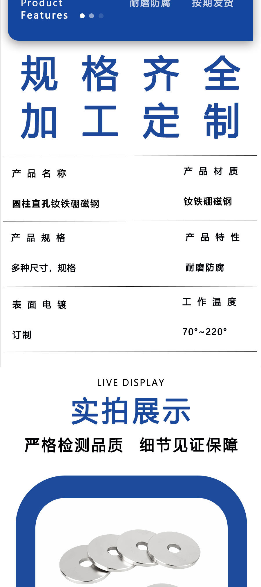 强力磁铁钕铁硼吸铁石圆形带孔长方形铷钕强磁打捞吸铁器磁性