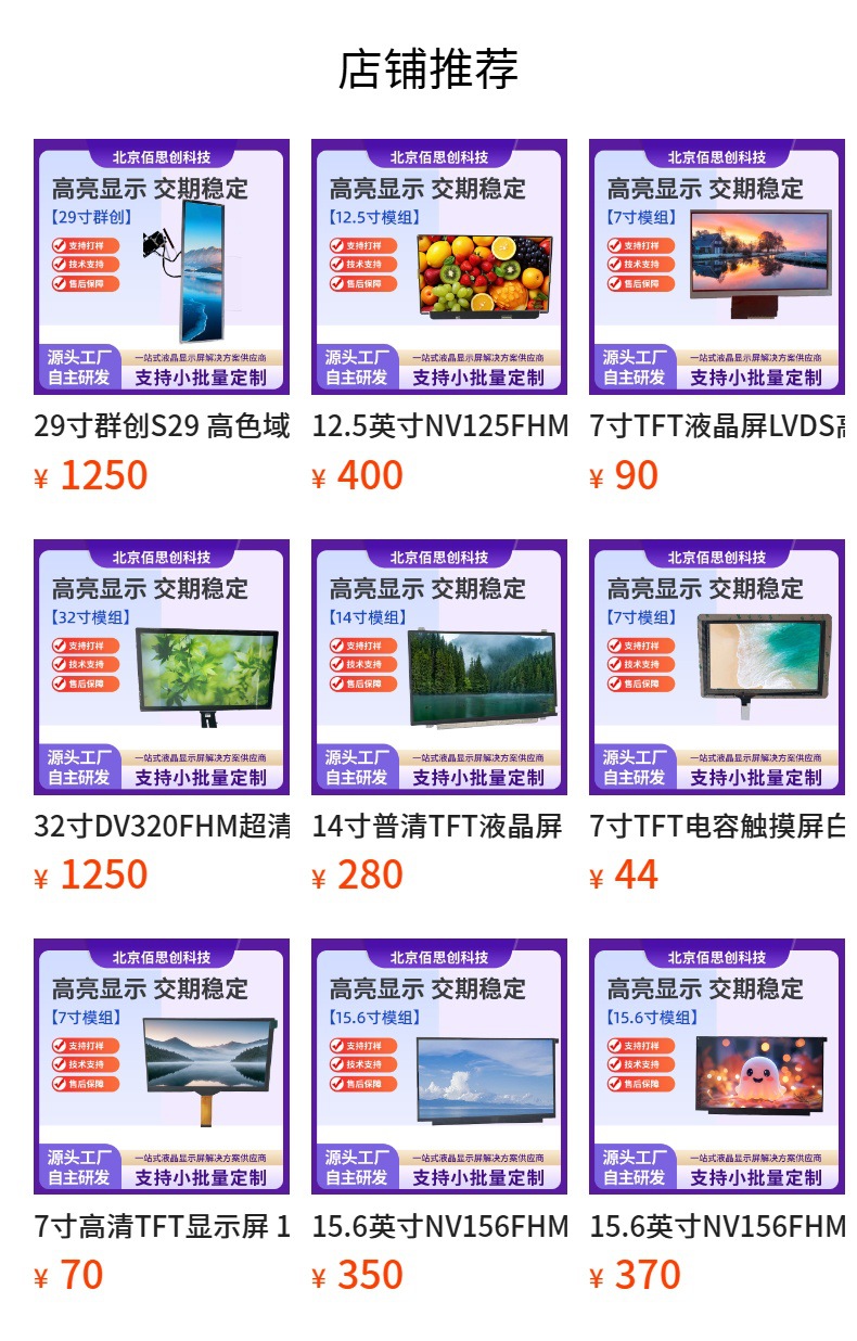 - 产品种类:TFT型液晶屏(模块)