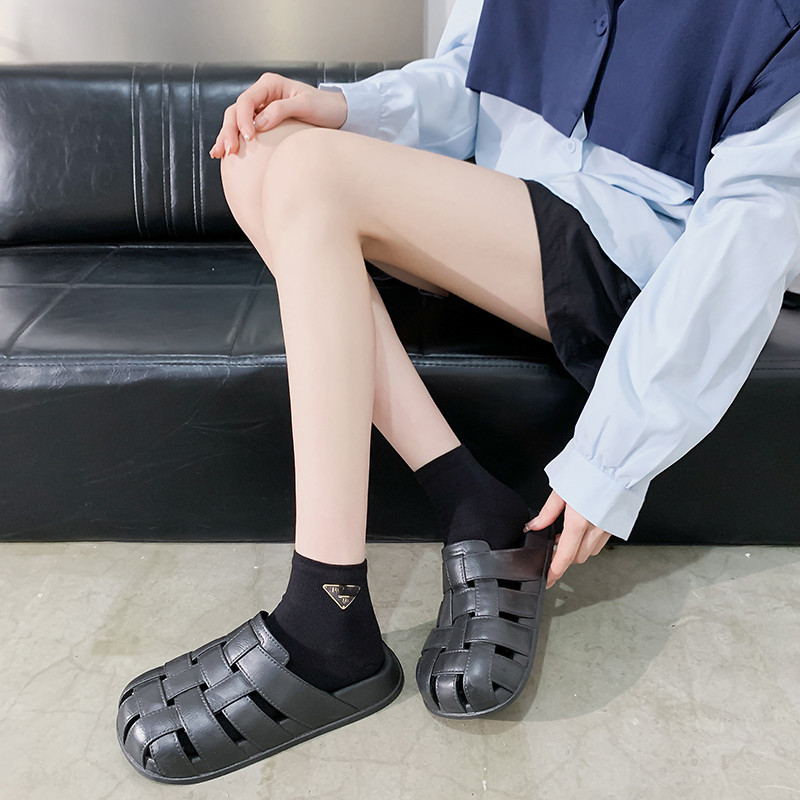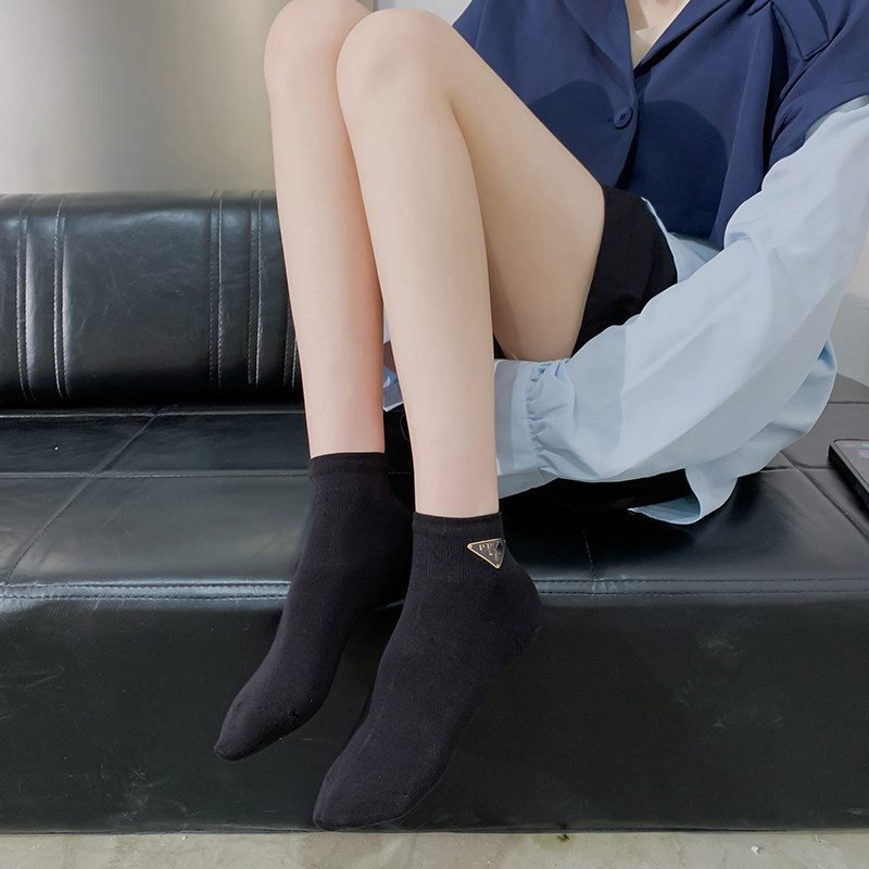 欧货烫印字母潮袜 春夏新品黑白时尚烫金船袜ins透气短筒运动女袜