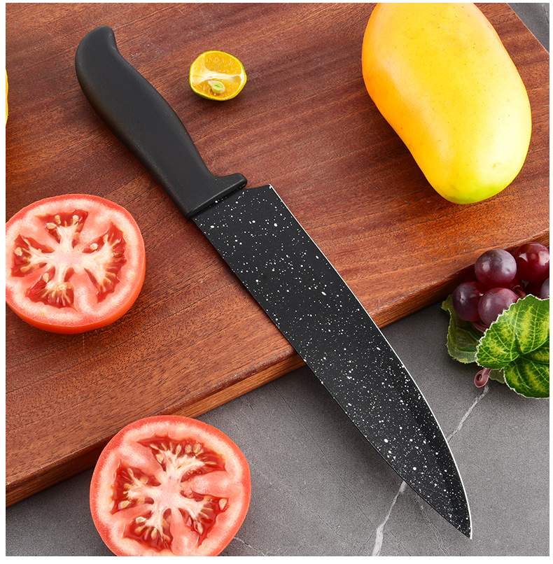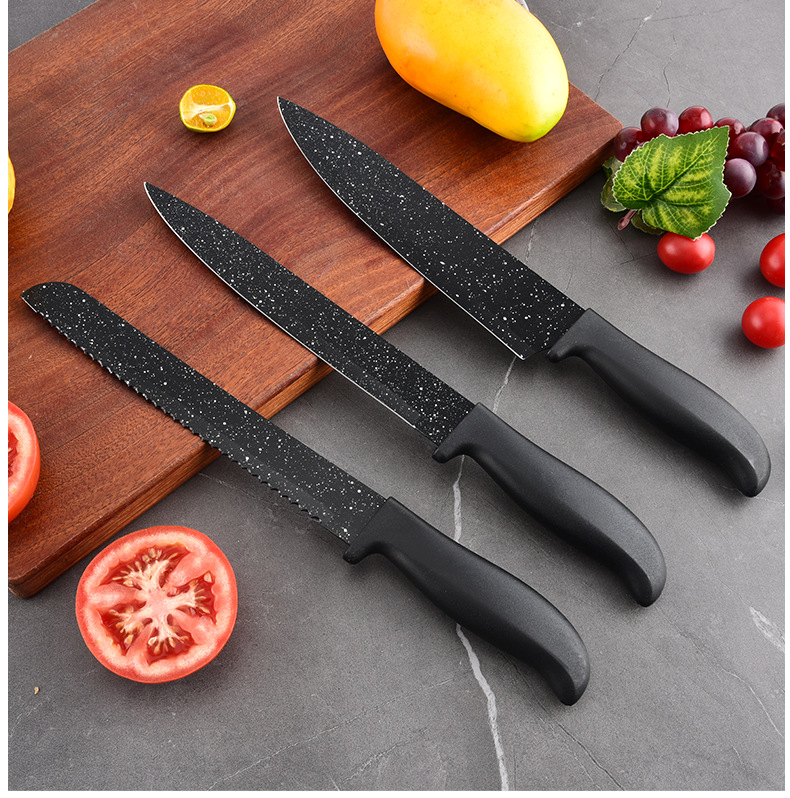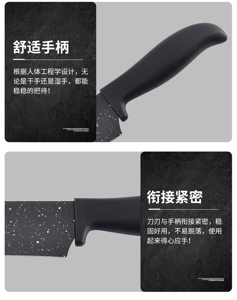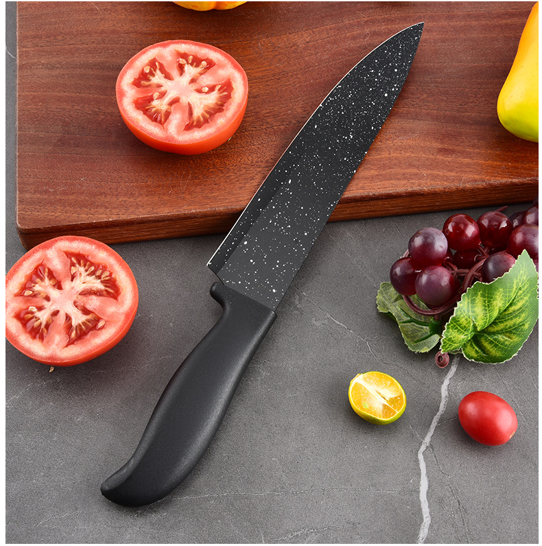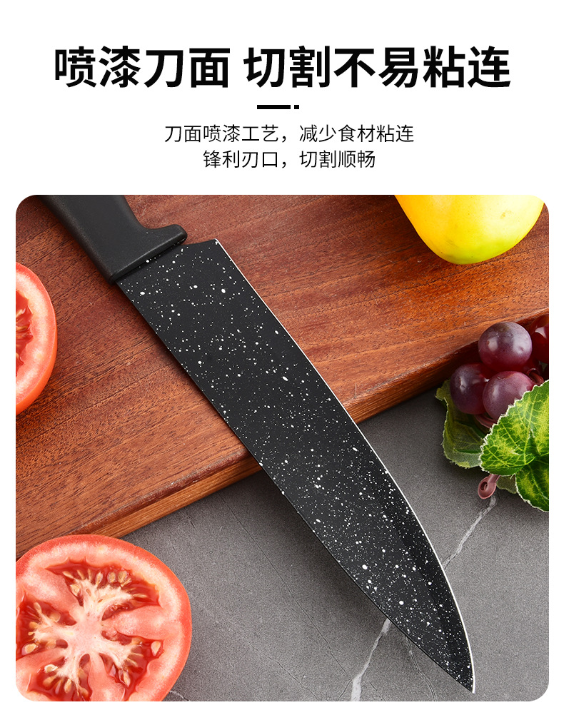 新款现货工厂批发不锈钢喷漆刀元宝柄墨饭石六件套刀跨境热卖刀具