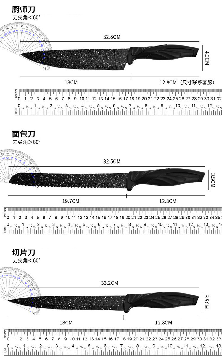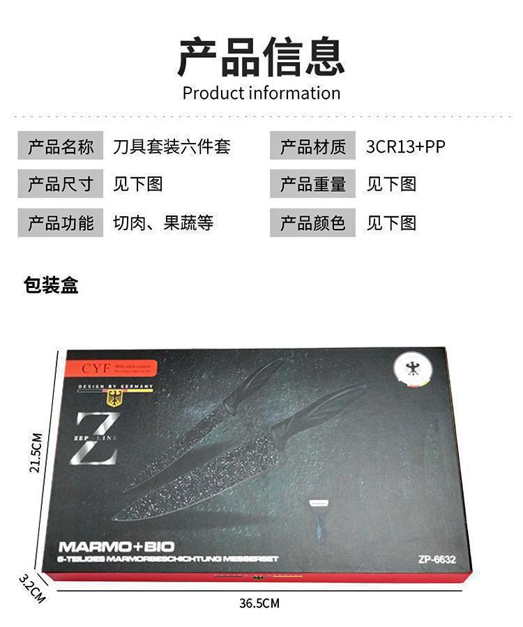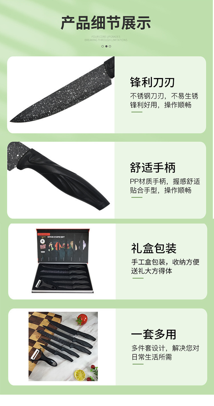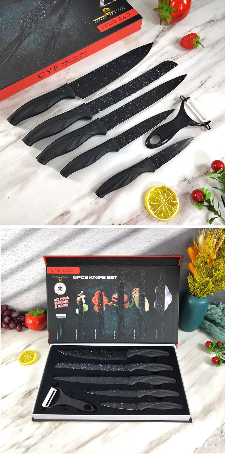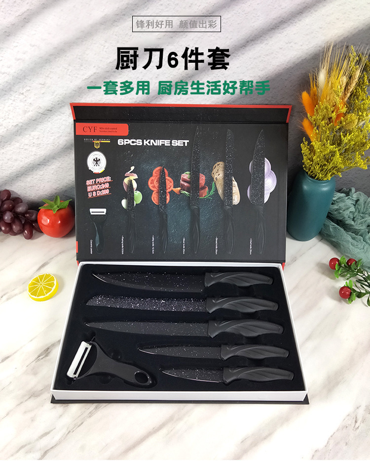 源头厂家现货现代简约风厨房刀具六件套不锈钢凤尾柄礼品套刀批发