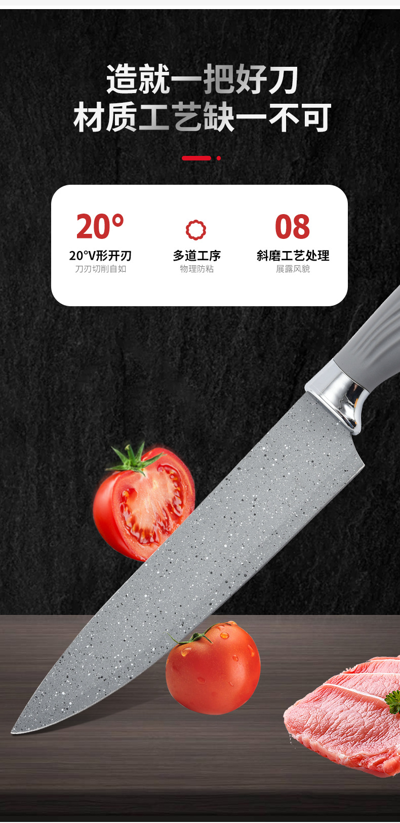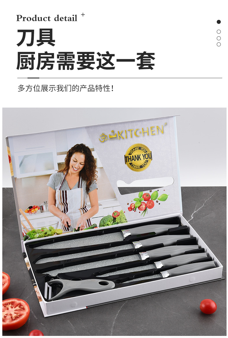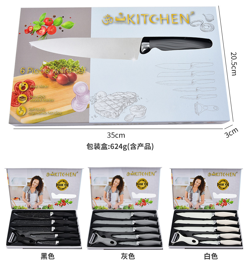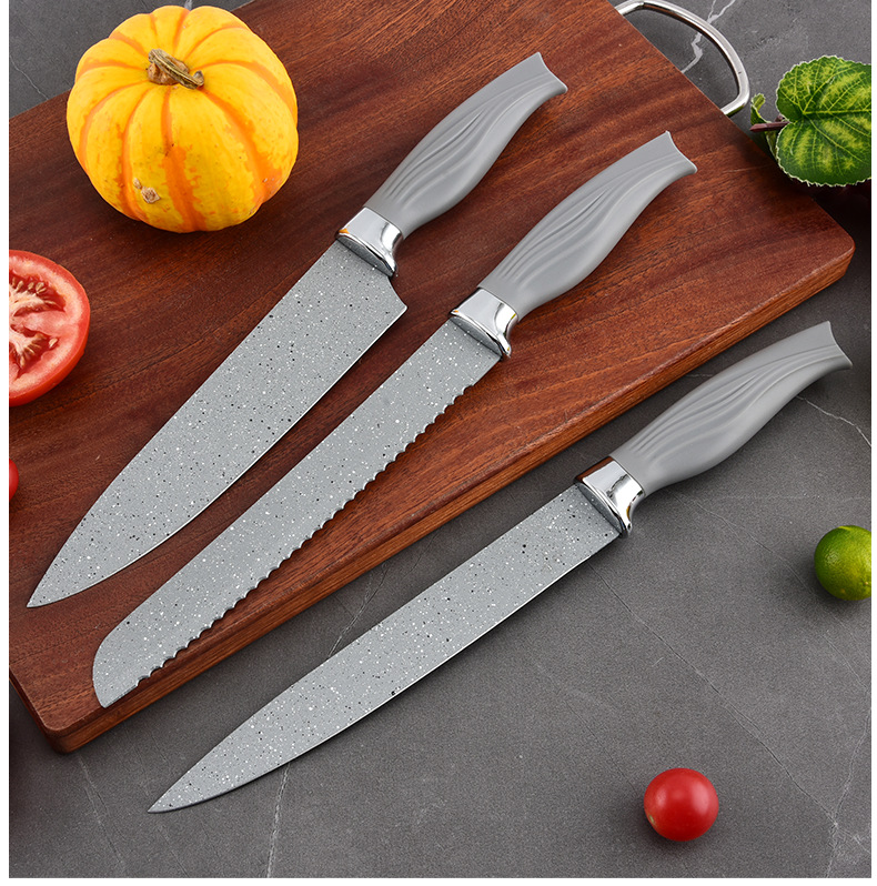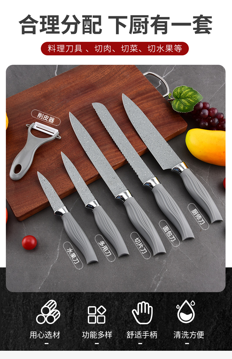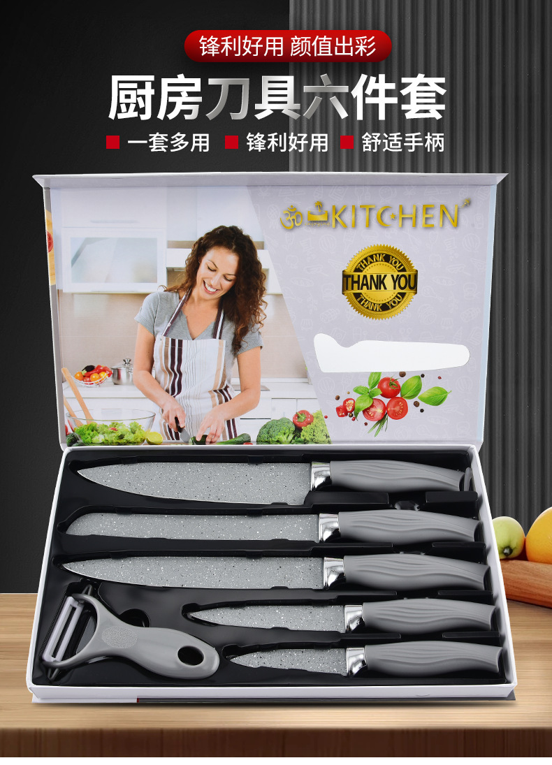 新款美鱼柄喷漆菜刀套装厨具六件套厨房不粘不锈钢批发刀轻奢