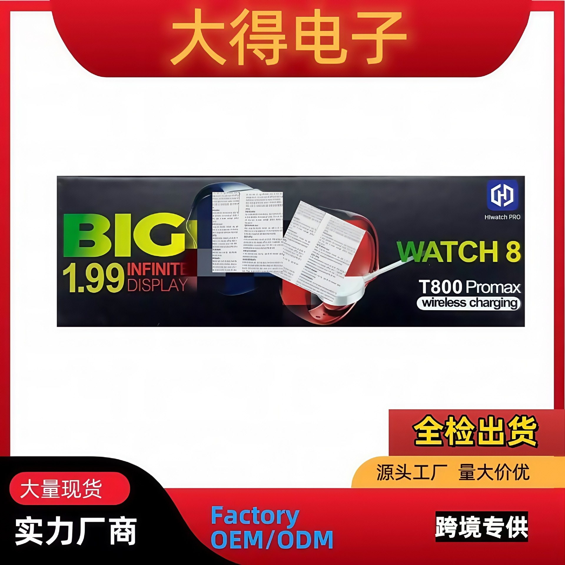 跨境新款T800PROMAX通话心率手表智能手表无线充高清大屏消息提醒