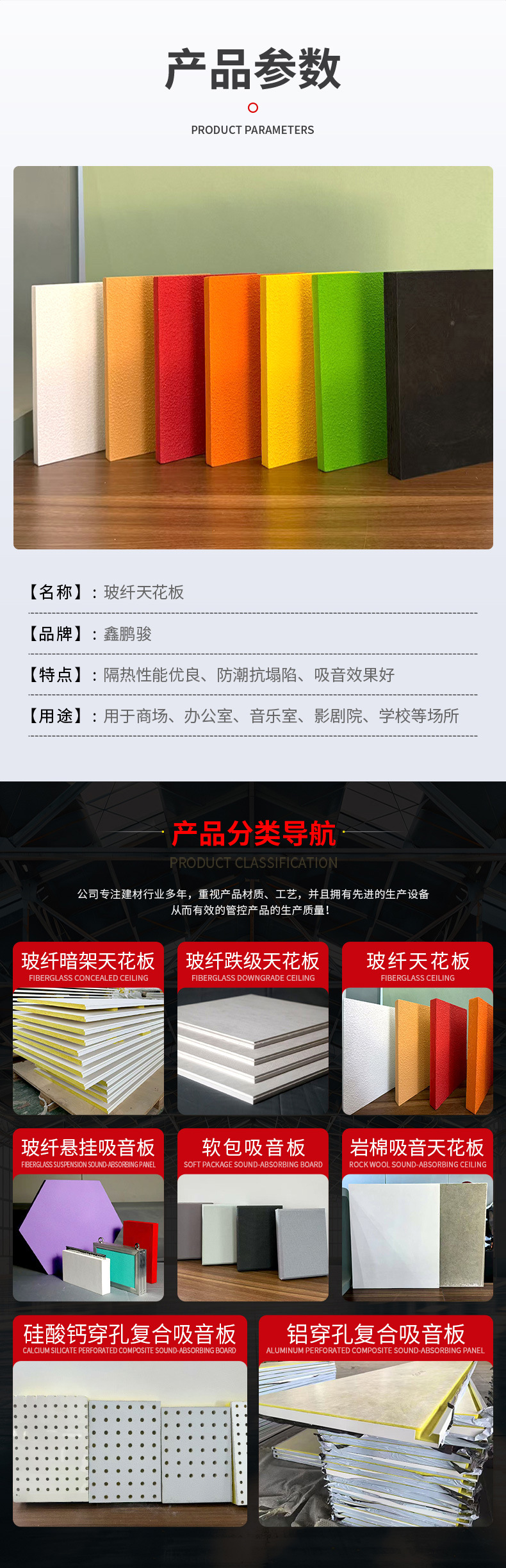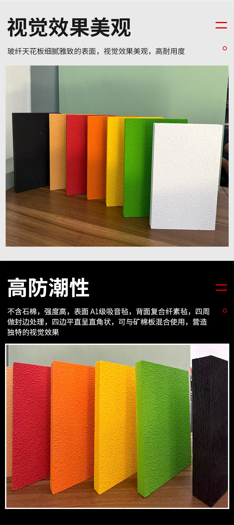 厂家直销玻纤吸音板学校报告厅医院吊顶防火降噪玻璃纤维天花板