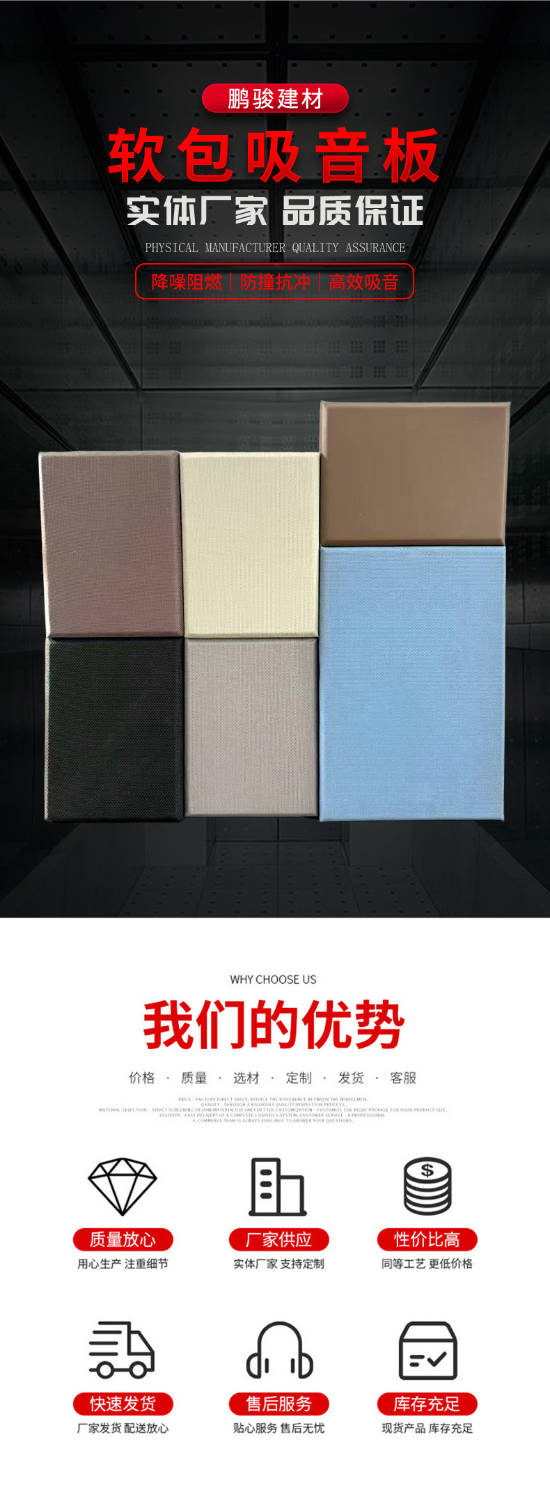防撞软包布艺板吸音板电影院KTV录音棚谈话室降噪布艺软包吸声板