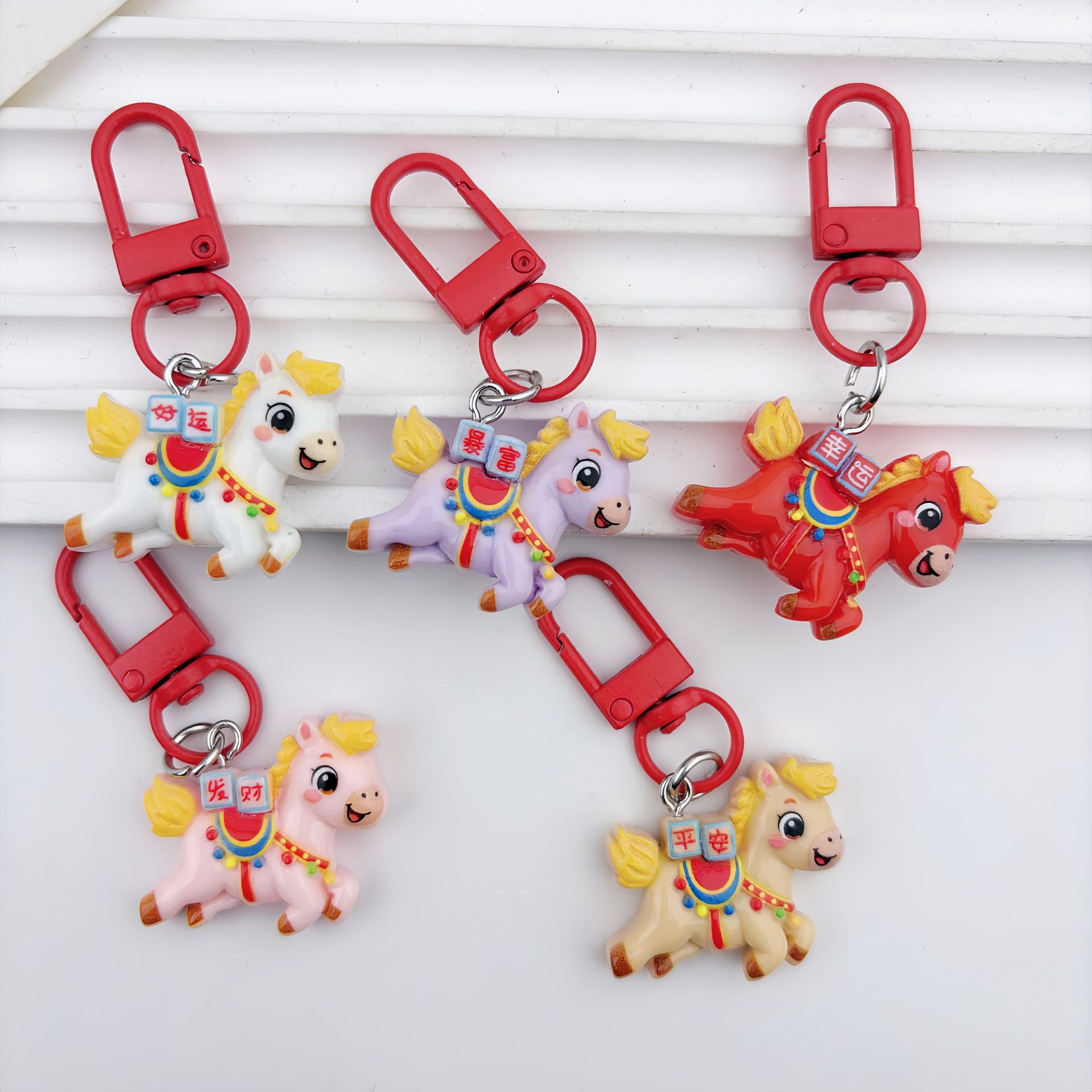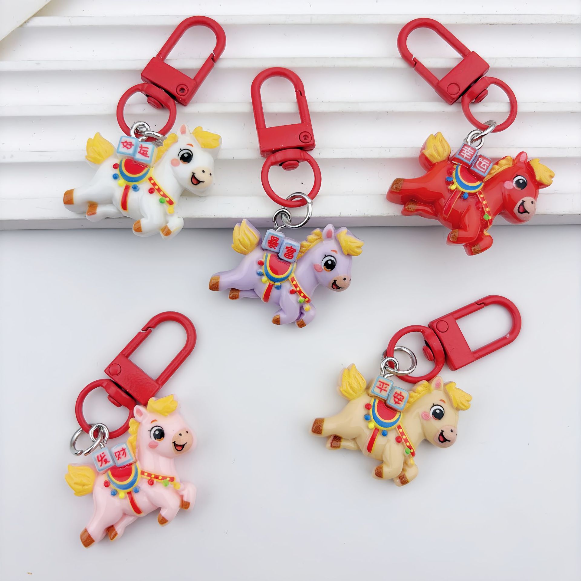 卡通新年红色飞马树脂钥匙扣挂件可爱少女包包闺蜜情侣小礼物批发
