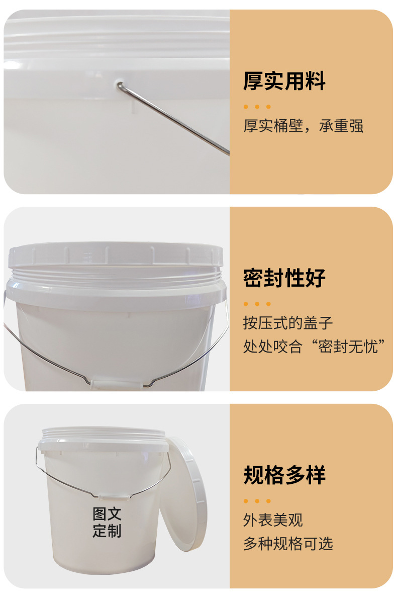 定制塑料桶多种规格可印logo油漆涂料桶圆形美式带盖密封桶化工桶