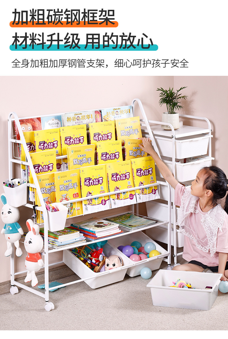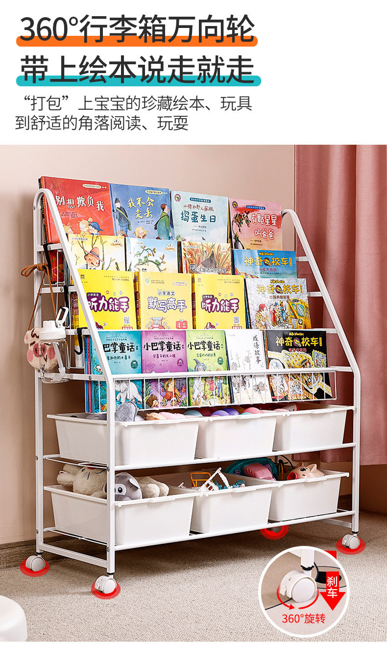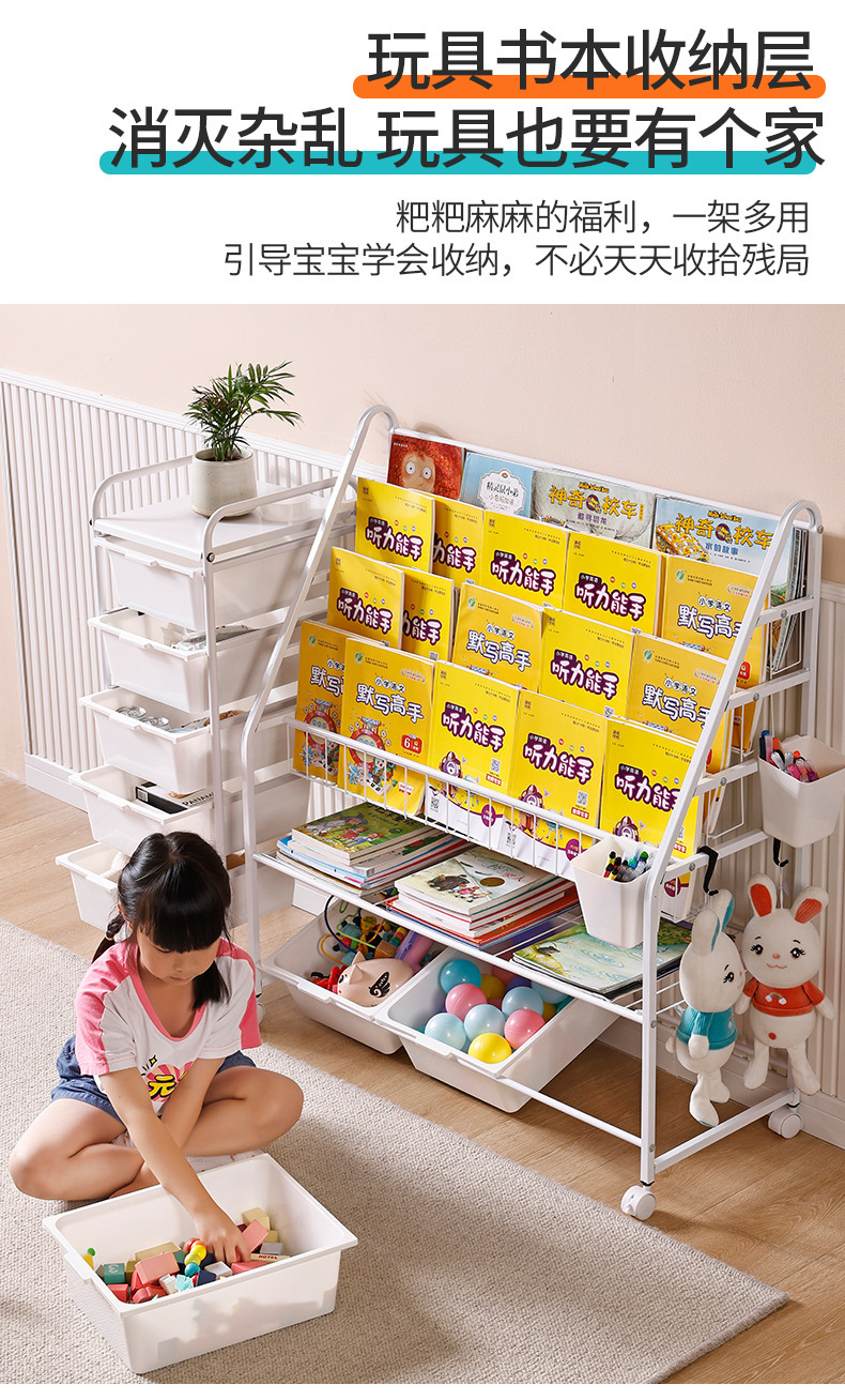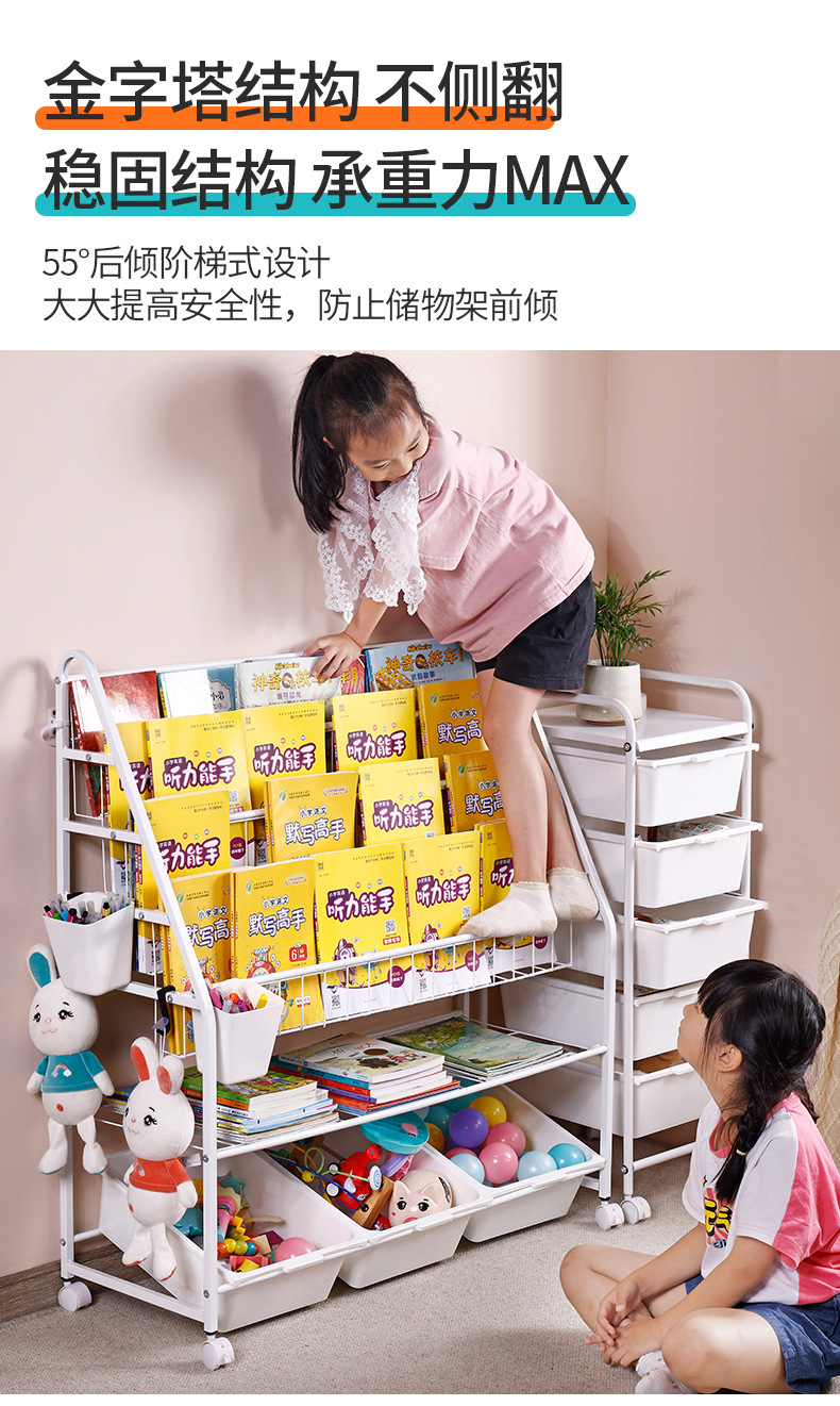 定制儿童书架家用落地玩具收纳架简易书柜幼儿园绘本移动置物架