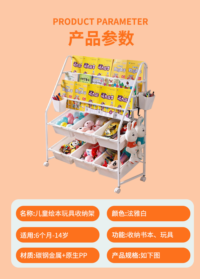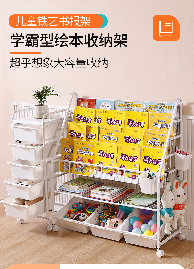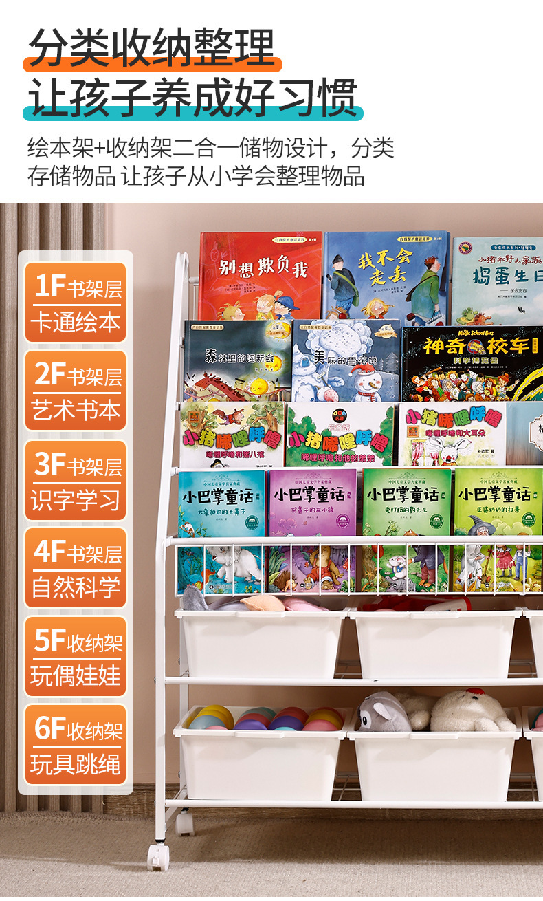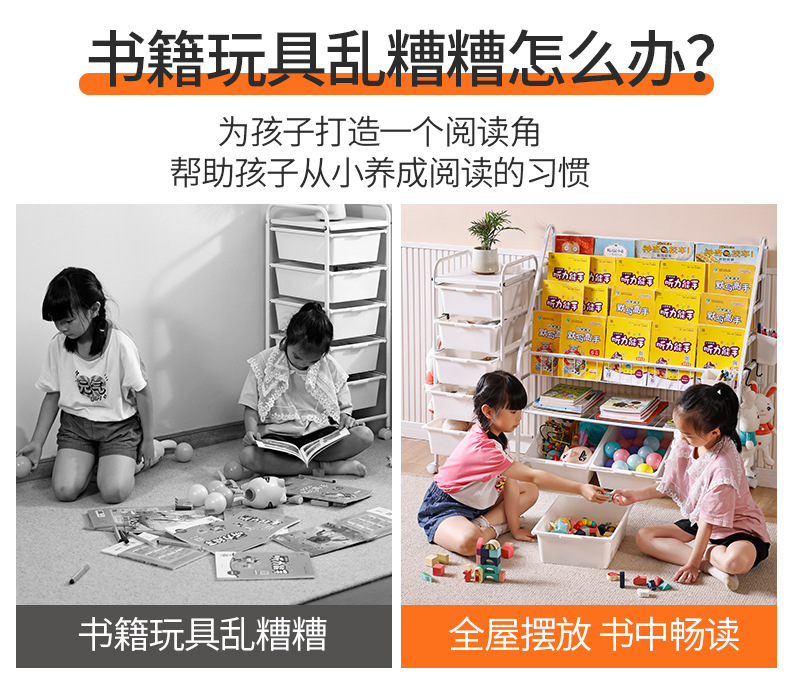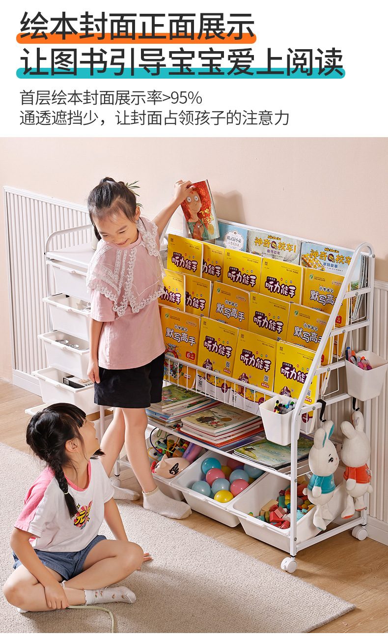 定制儿童书架家用落地玩具收纳架简易书柜幼儿园绘本移动置物架