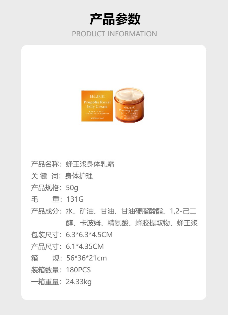 EELHOE 蜂王浆身体乳霜 滋润肌肤亮泽柔嫩细腻清爽轻盈保湿易吸收