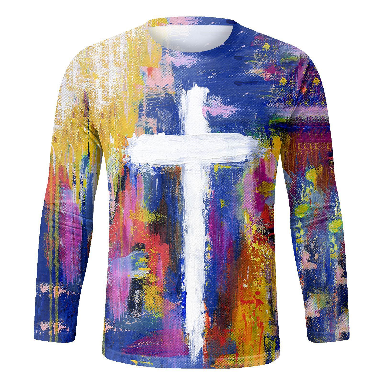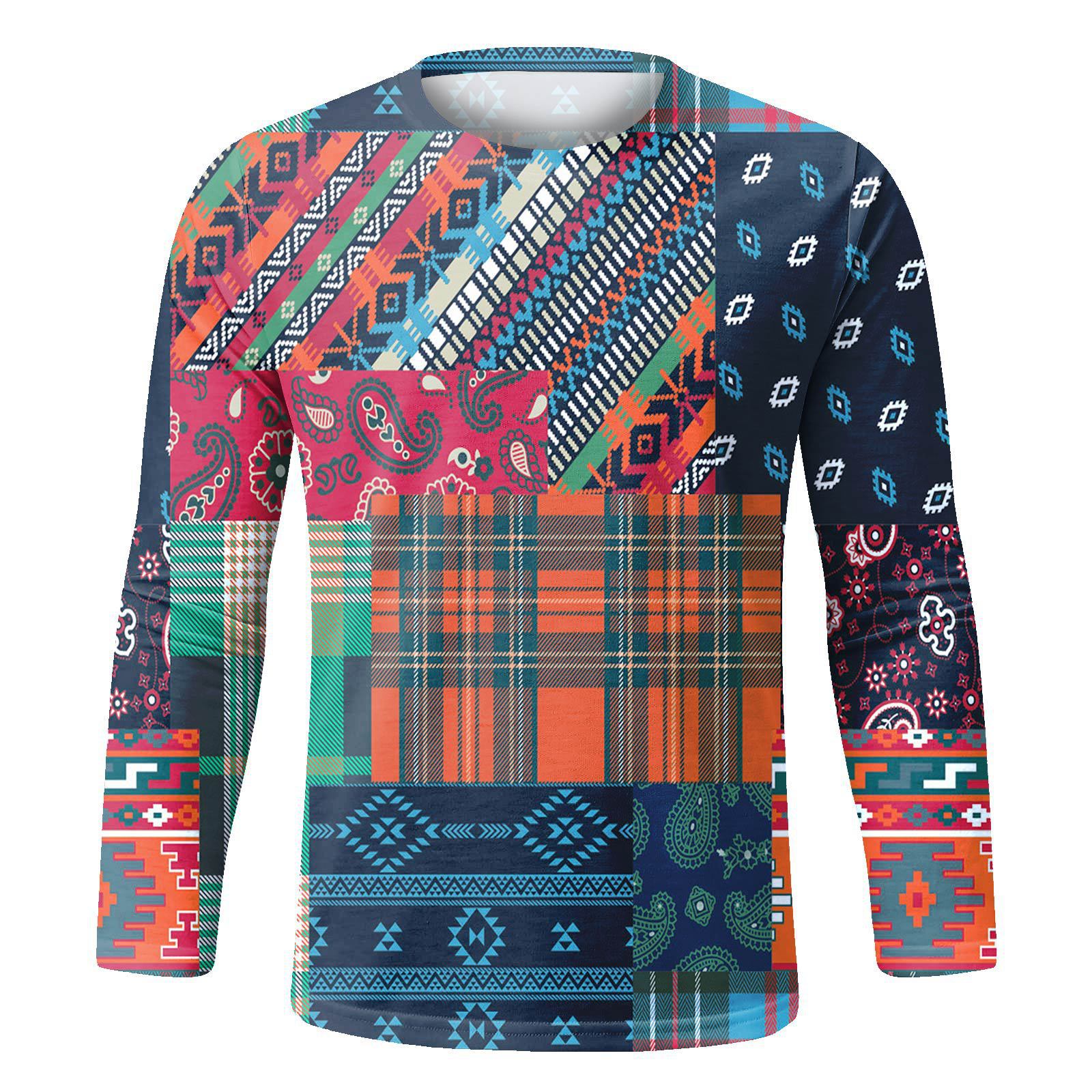 跨境秋季新款男装长袖T恤3D印花男士休闲时尚复古卫衣长袖打底衫