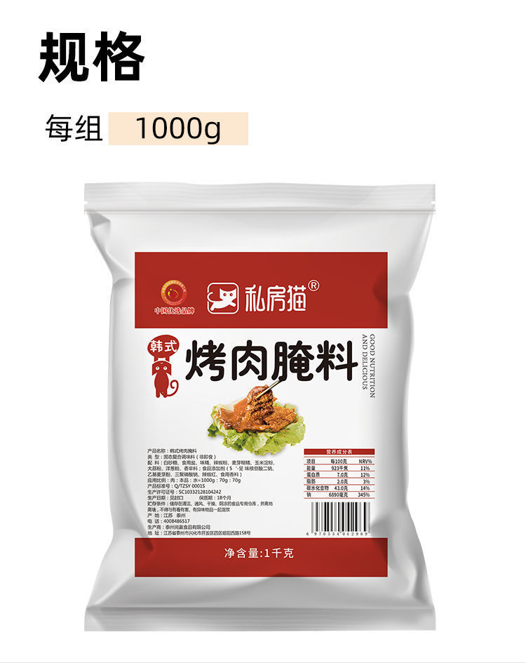 私房猫韩式烤肉腌料烤五花肉牛羊肉腌料商用烤肉腌料烧烤调料
