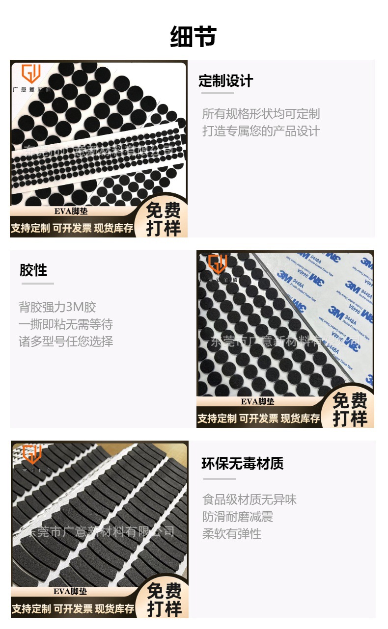 定 制黑色圆形eva胶垫自粘泡棉胶贴防火阻燃EVA脚垫网格桌椅垫