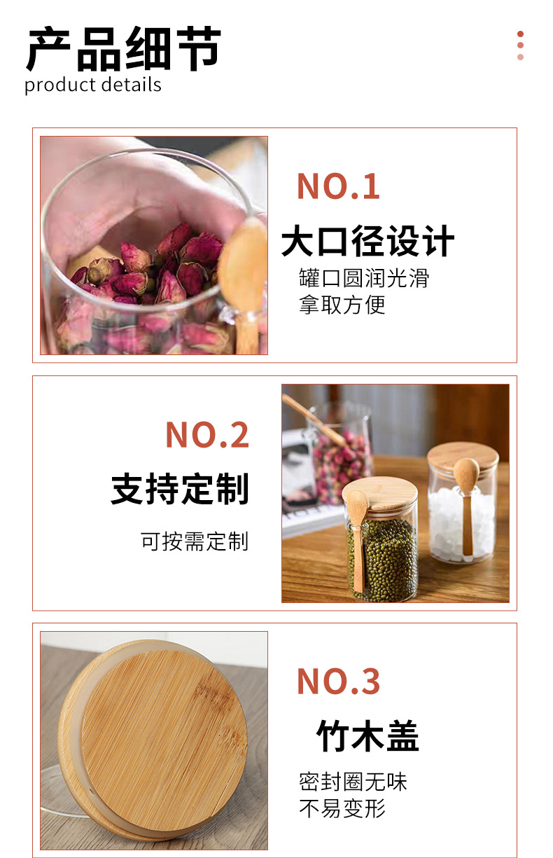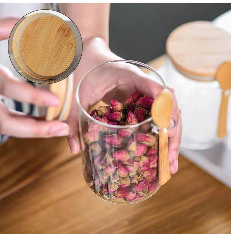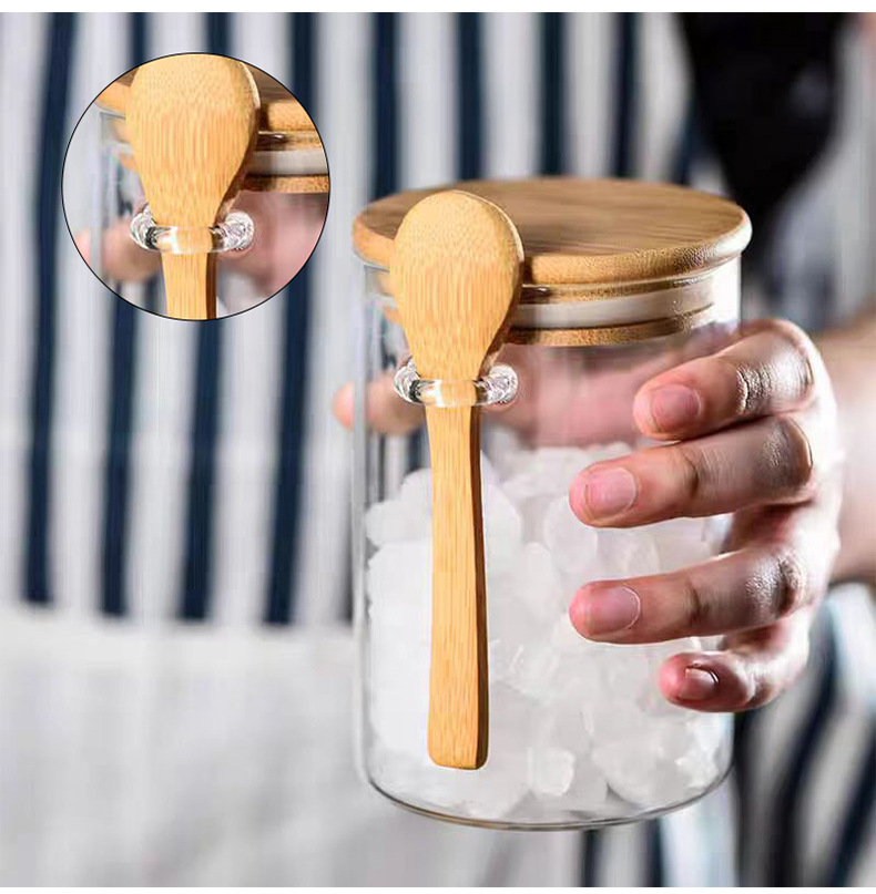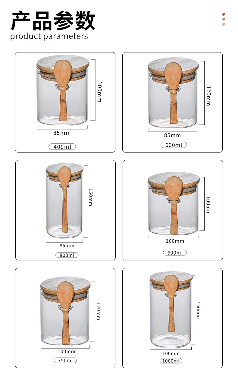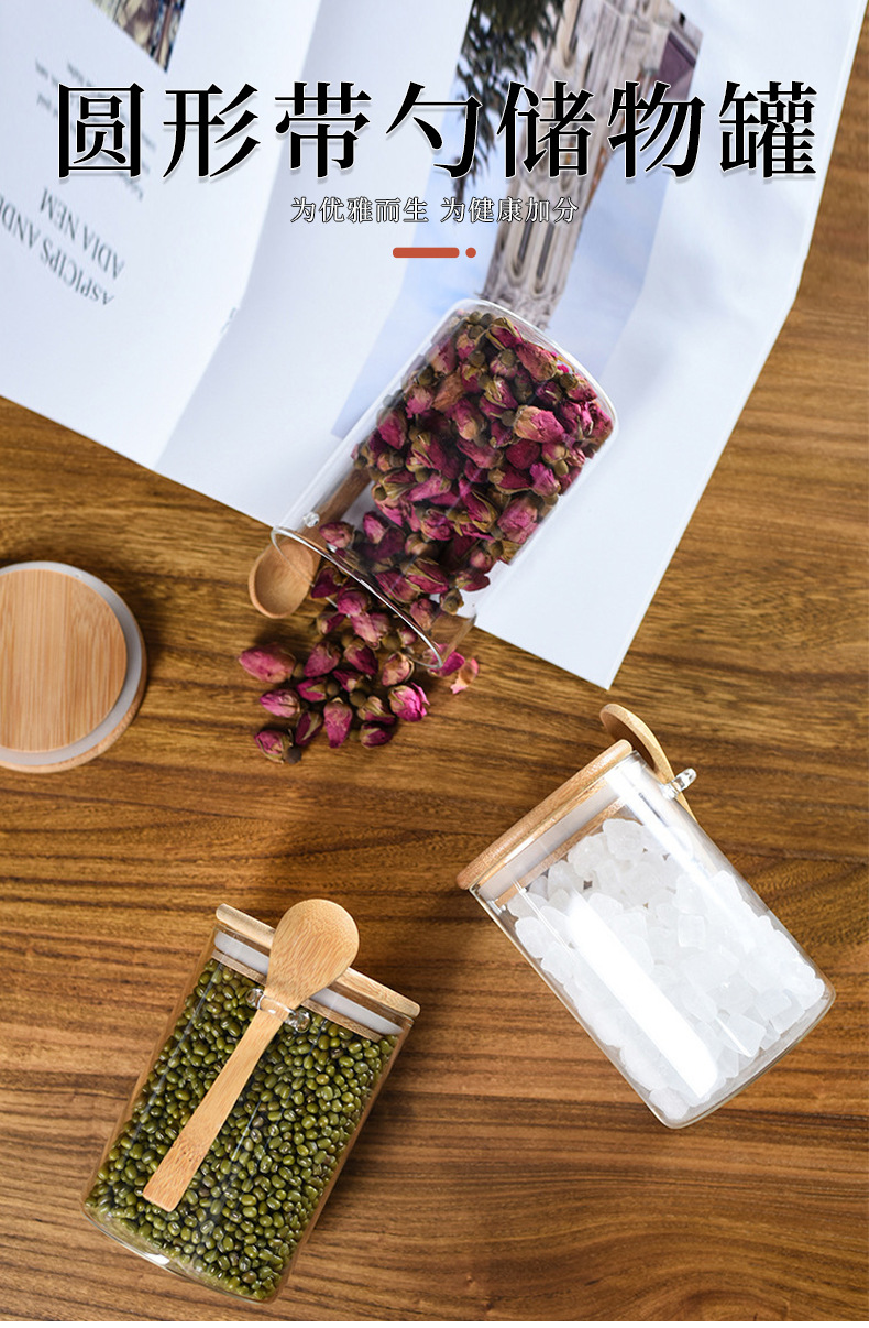 定制款杂粮密封罐透明高硼硅玻璃储存罐厨房调料罐圆形带勺储物罐