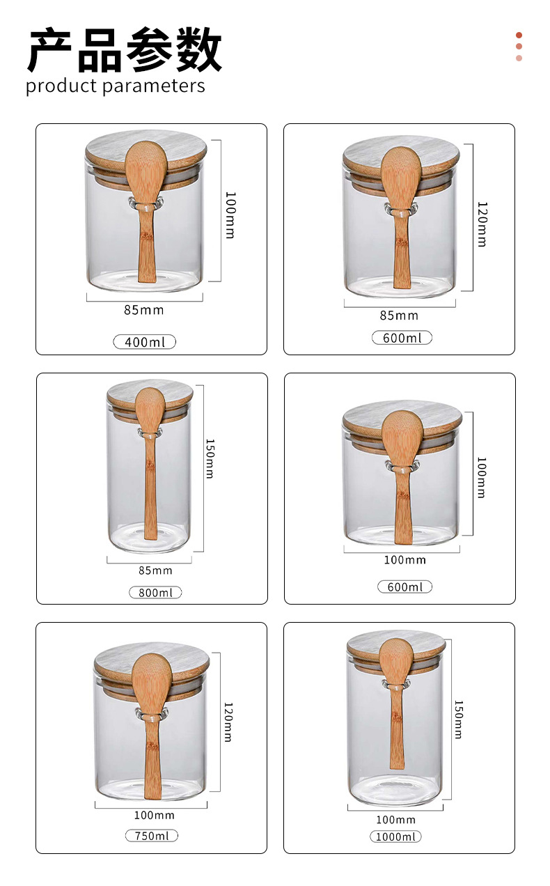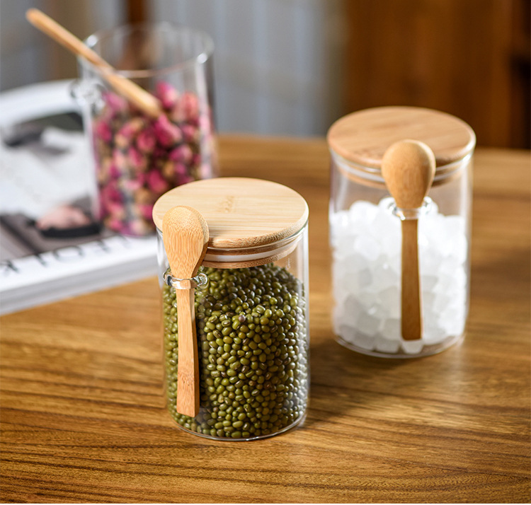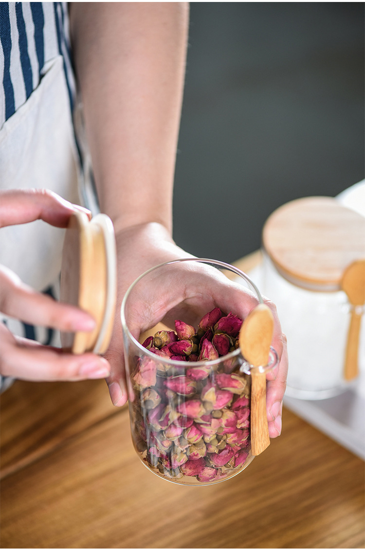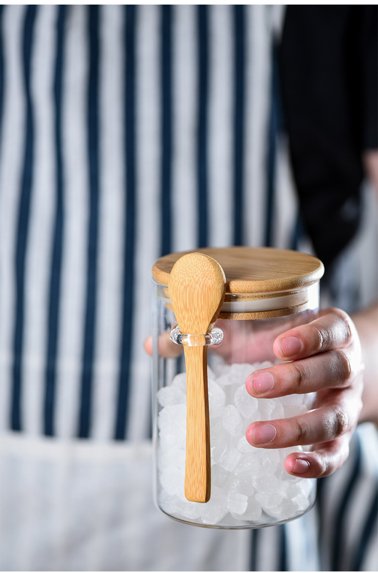 玻璃圆形储物罐带木勺调料罐家用收纳罐子高硼硅玻璃密封罐茶叶罐