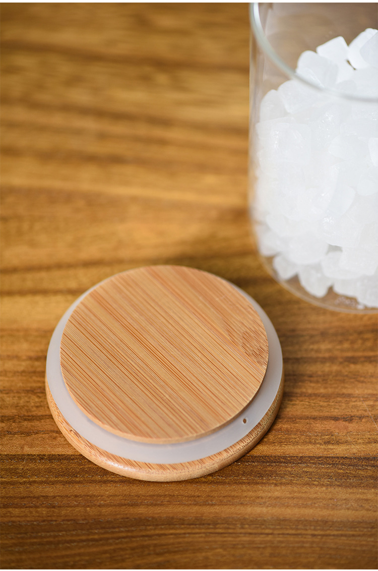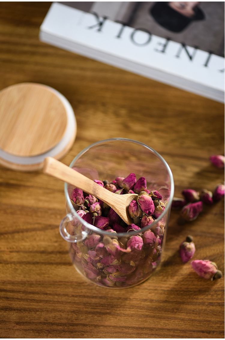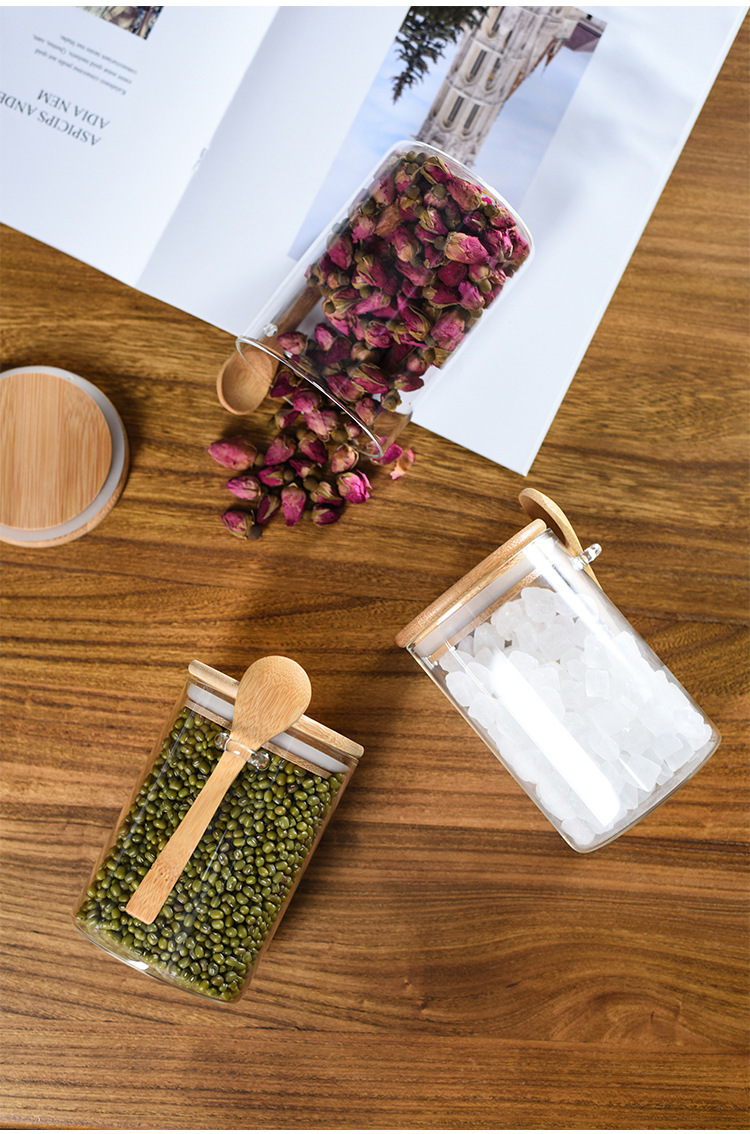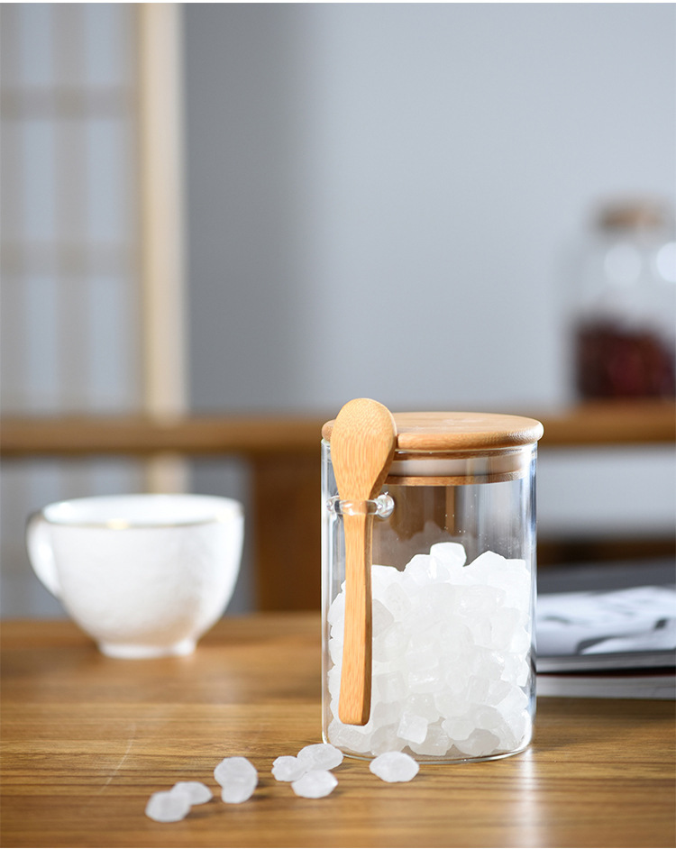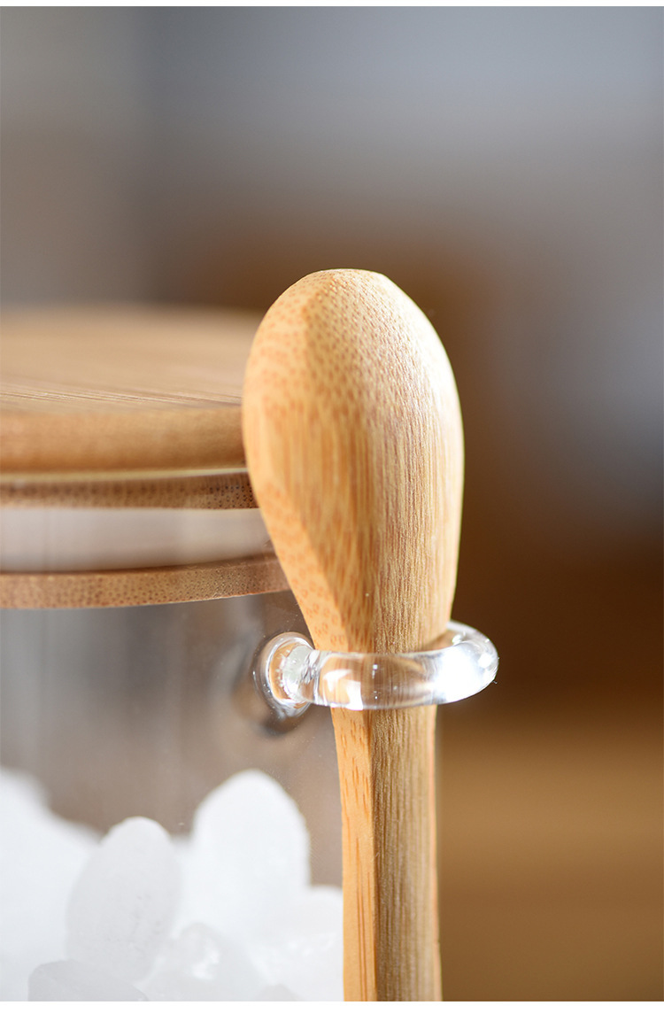 玻璃圆形储物罐带木勺调料罐家用收纳罐子高硼硅玻璃密封罐茶叶罐