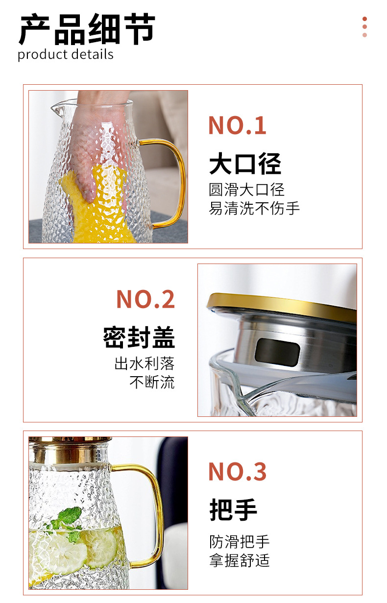 冰点冷水壶玻璃耐高温家用冰箱大容量凉白开水壶耐热防摔扎壶套装