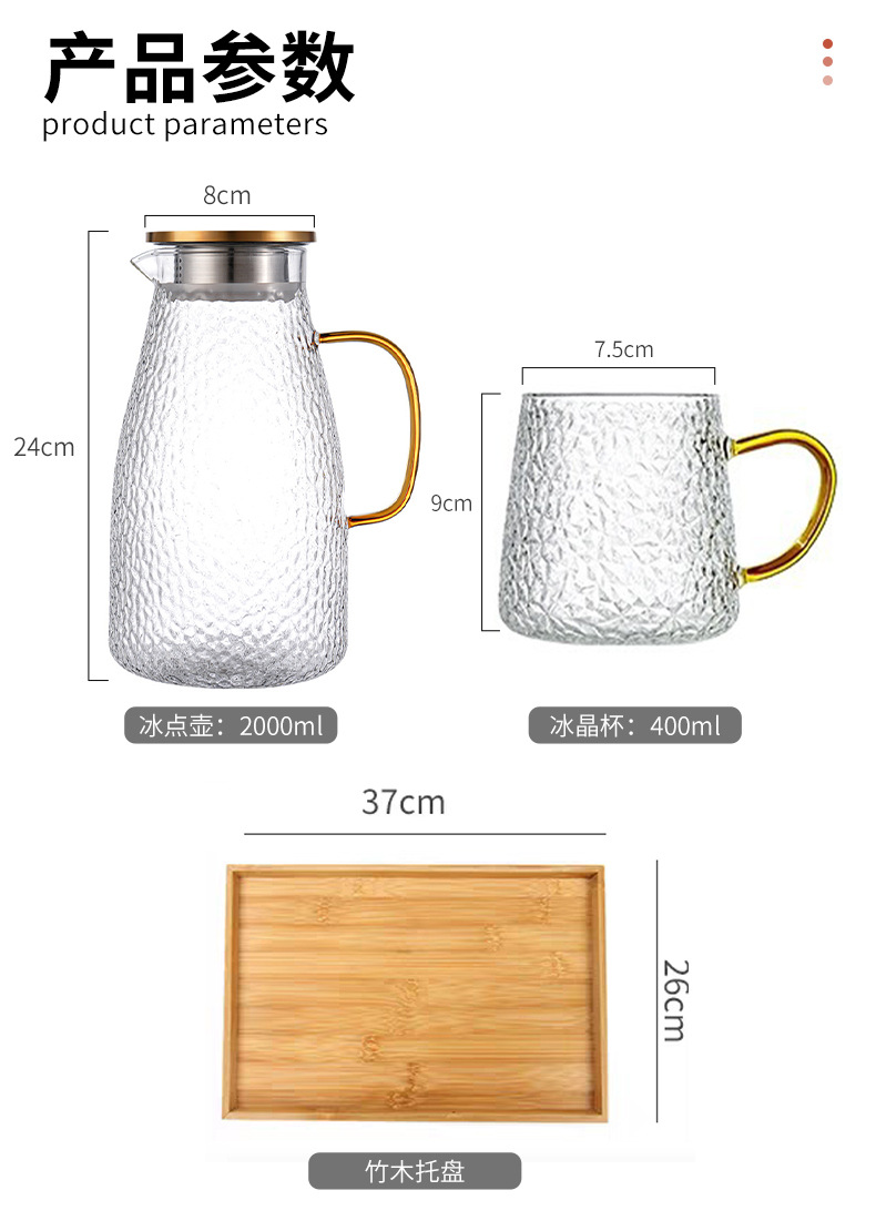 - 颜色:冰点壶2000ML+冰晶杯2只