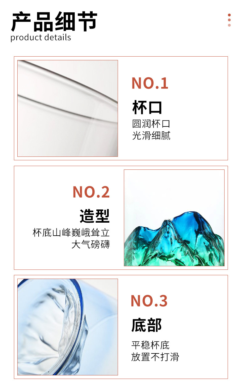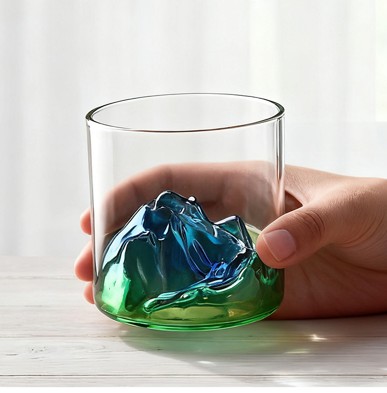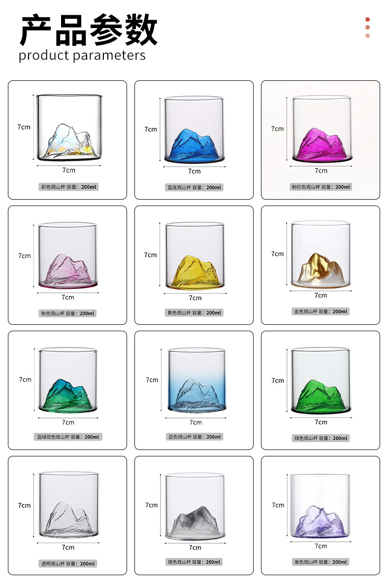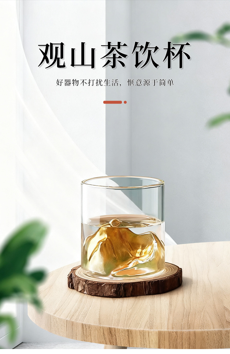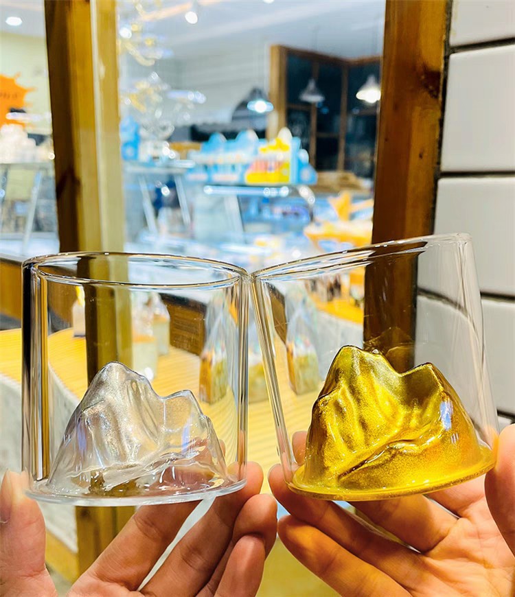 批发玻璃观山杯国潮风网红创意彩色观山杯茶杯酒杯玻璃观山茶饮杯