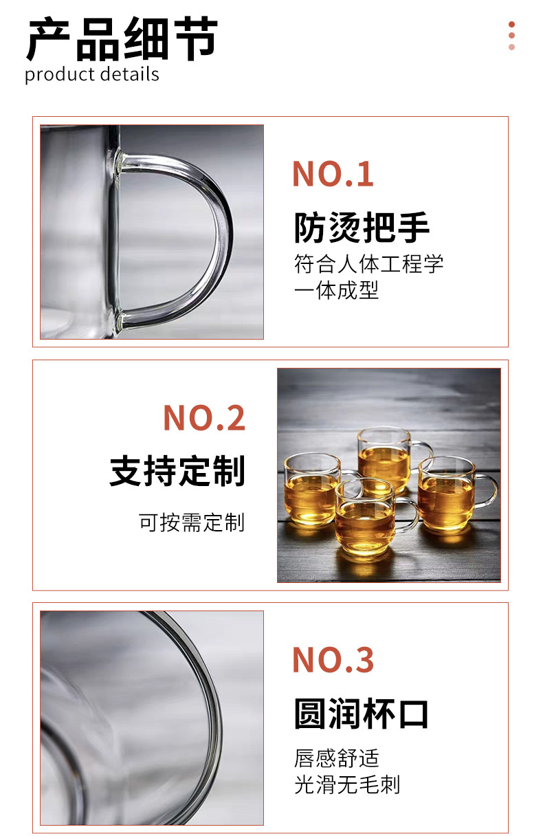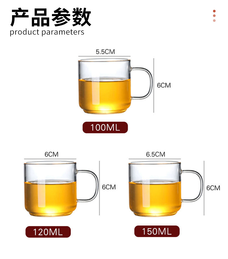 定制透明玻璃小茶杯新品耐热功夫茶具泡茶杯子高硼硅带把手品茗杯