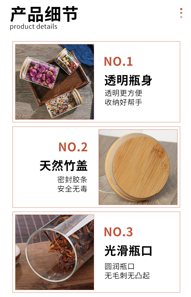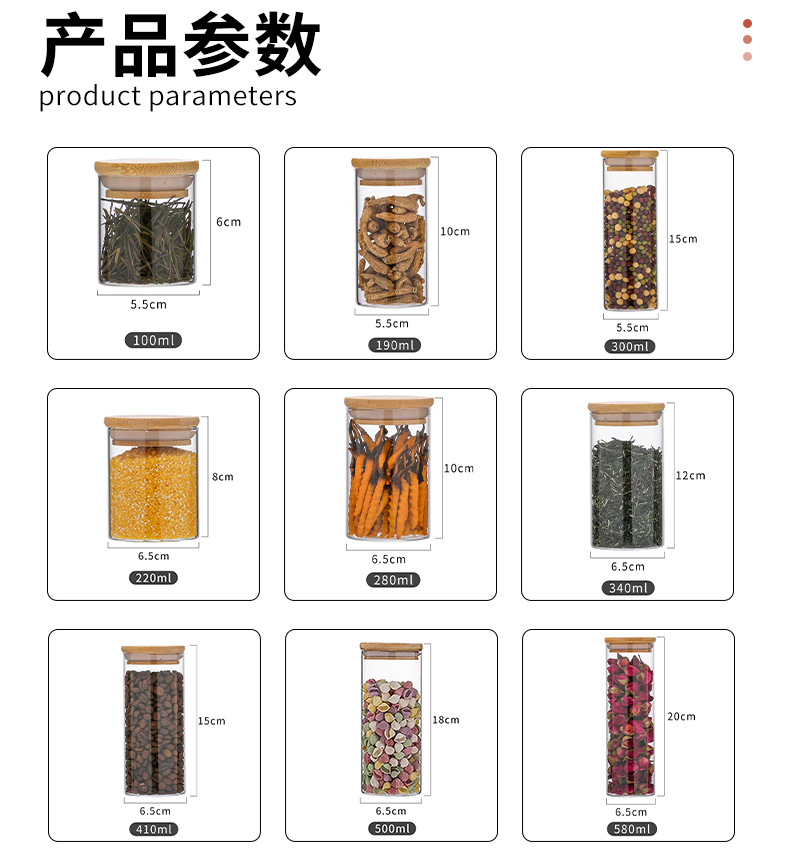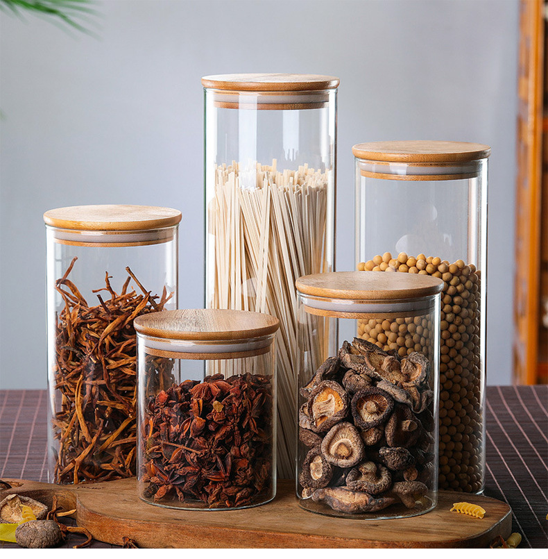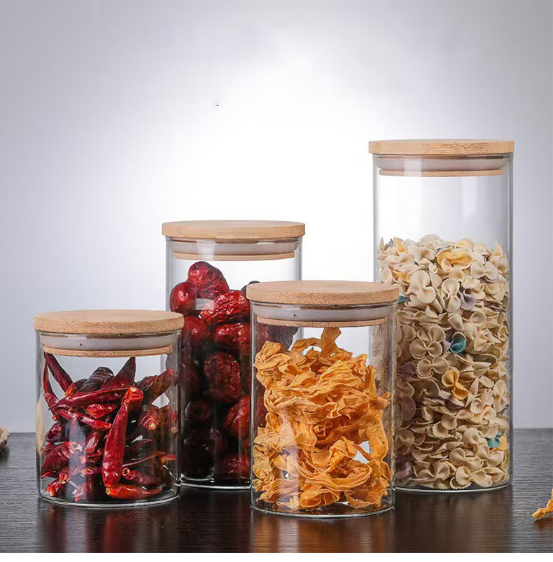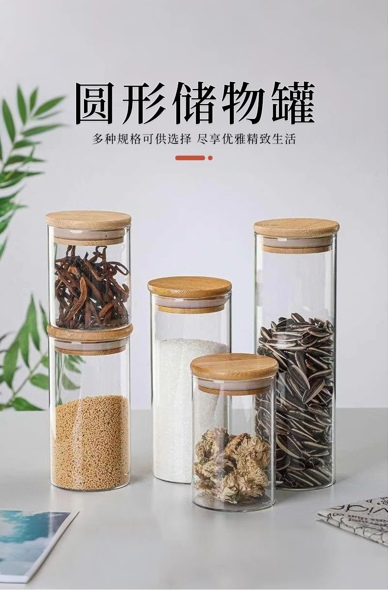 定制家用玻璃收纳罐透明圆身直筒高硼硅密封罐杂粮罐圆形储物罐
