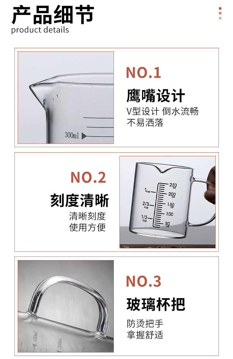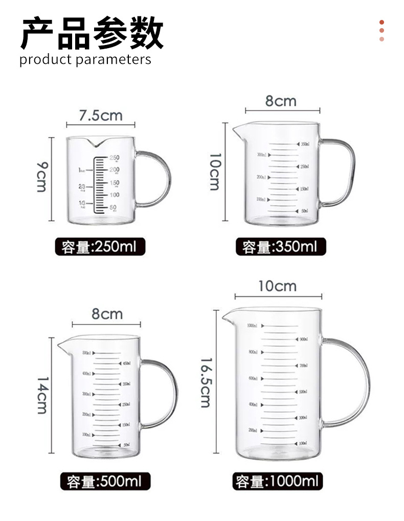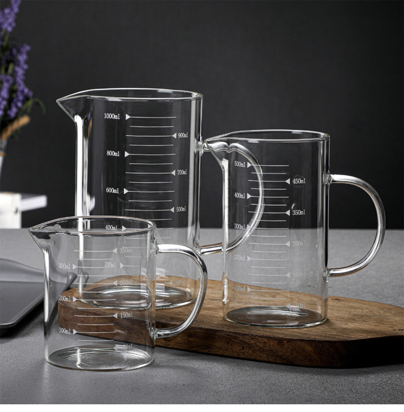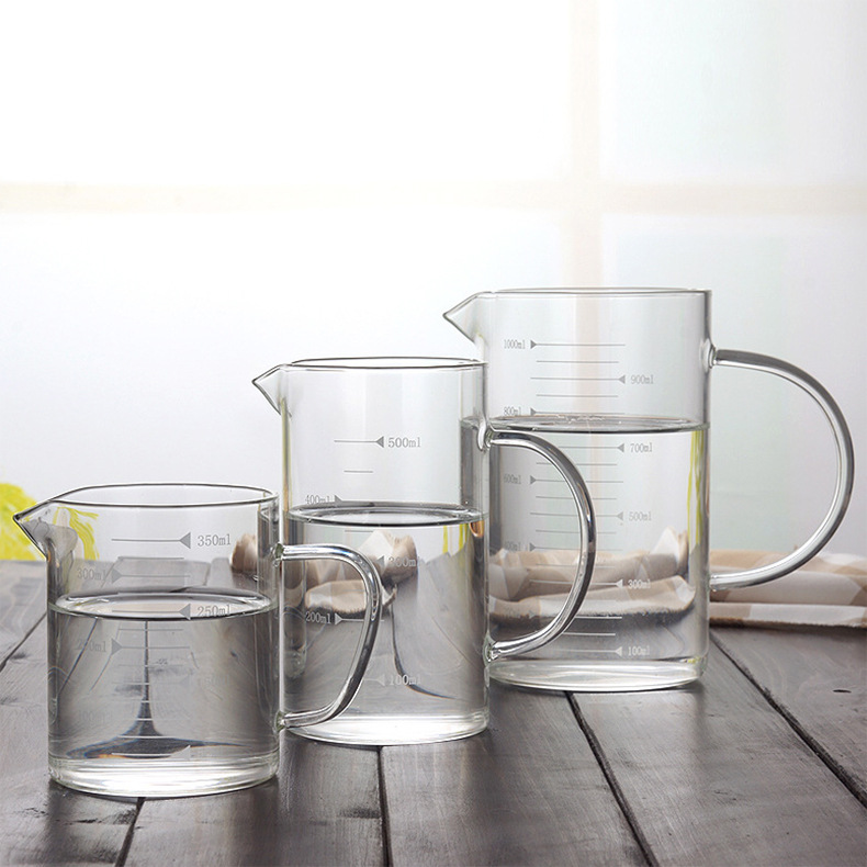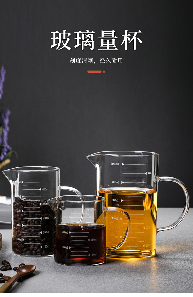 玻璃量杯耐高温标准带手柄刻度杯子高硼硅透明水杯加厚款玻璃杯