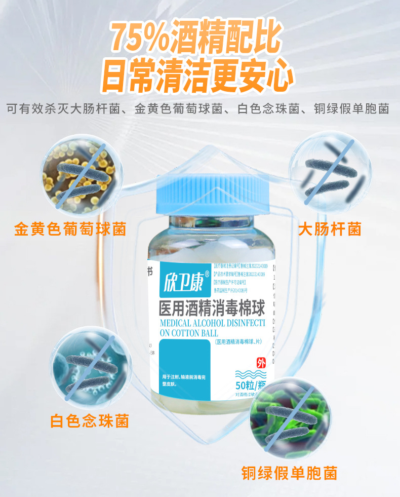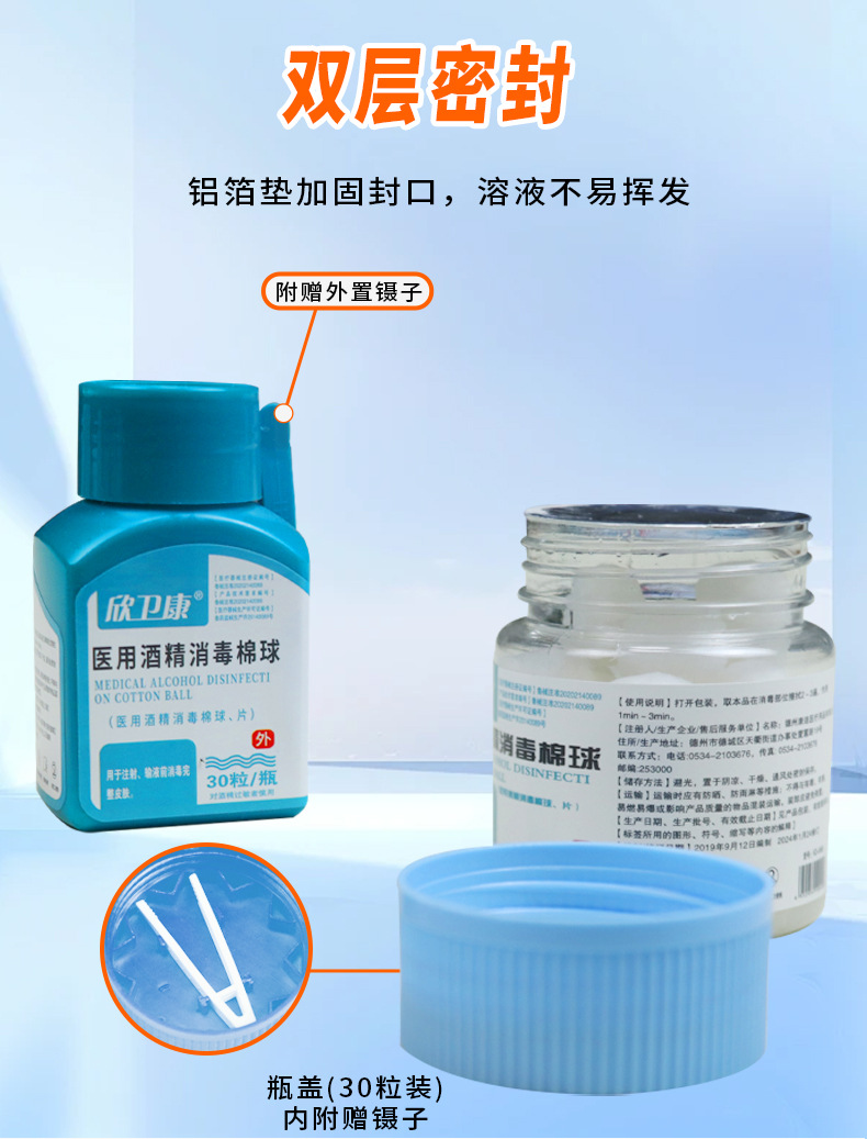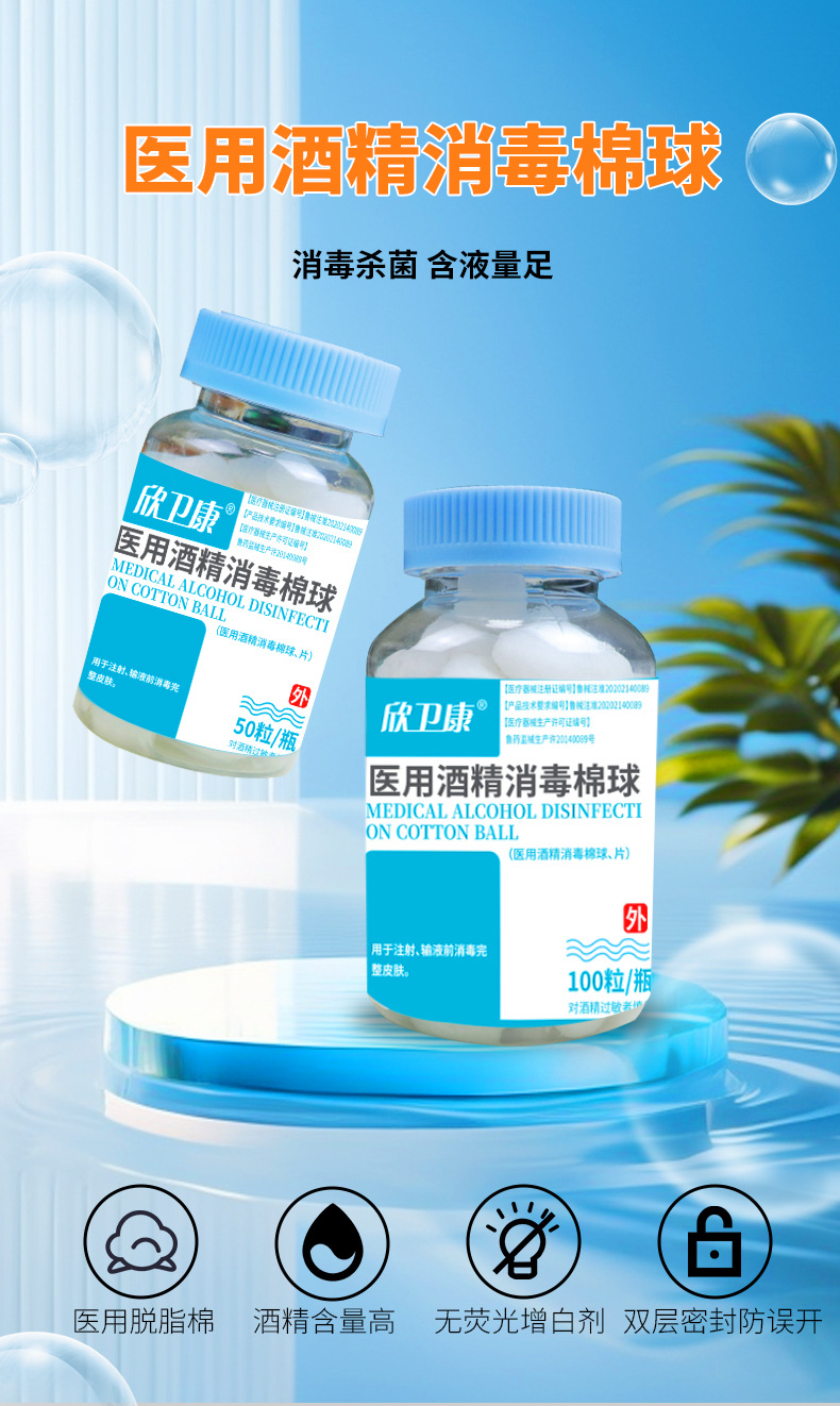 欣卫康酒精消毒棉球家用便携一次性皮肤消毒伤口杀菌清洁消毒棉球