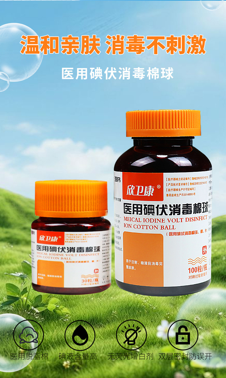 医用无菌碘伏棉球消毒家用一次性脱脂棉消毒灭菌伤口清洁碘伏棉球
