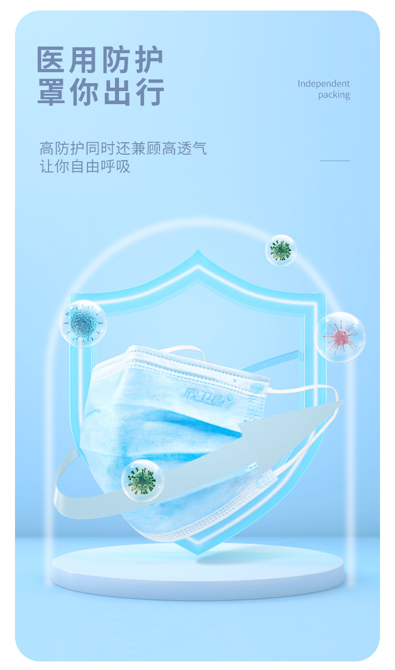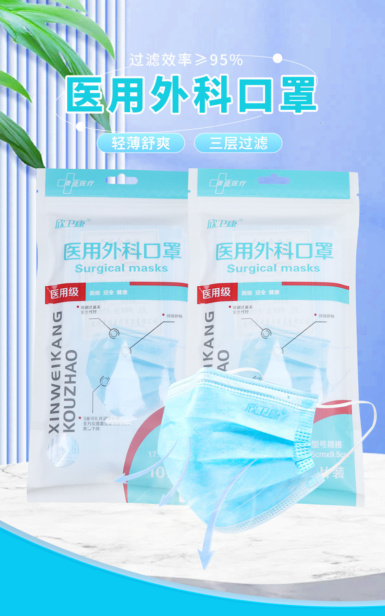 欣卫康10只装无菌熔喷布三层透气独立包装医用防护外科一次性口罩