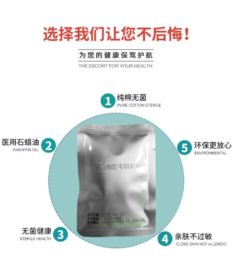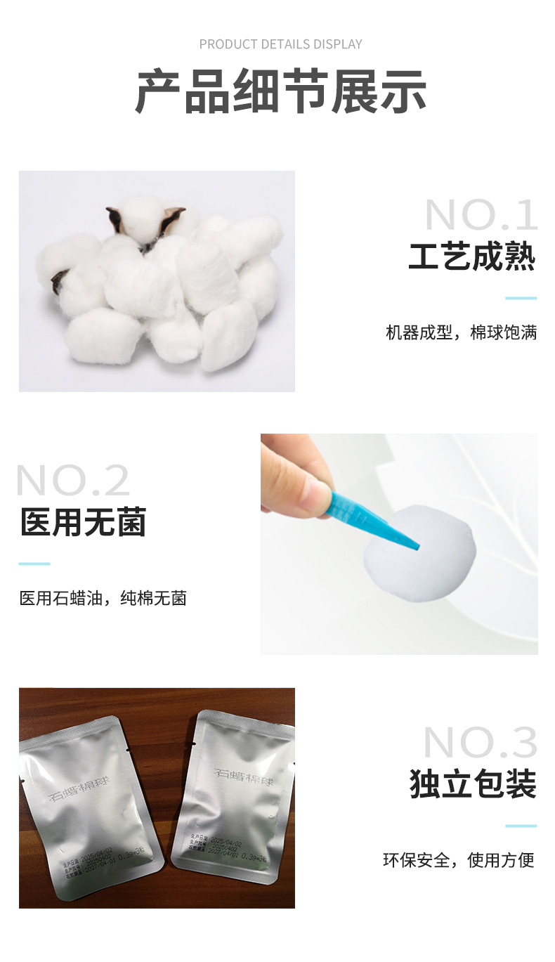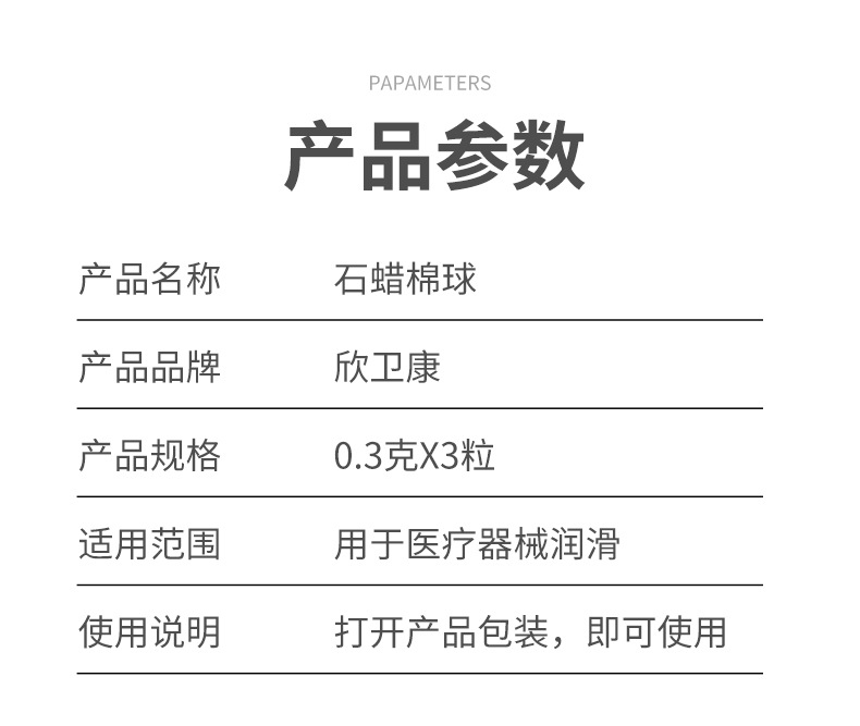 医用石蜡棉球小包装导管润滑无菌脱脂棉灌肠管胃管一次性石蜡棉球