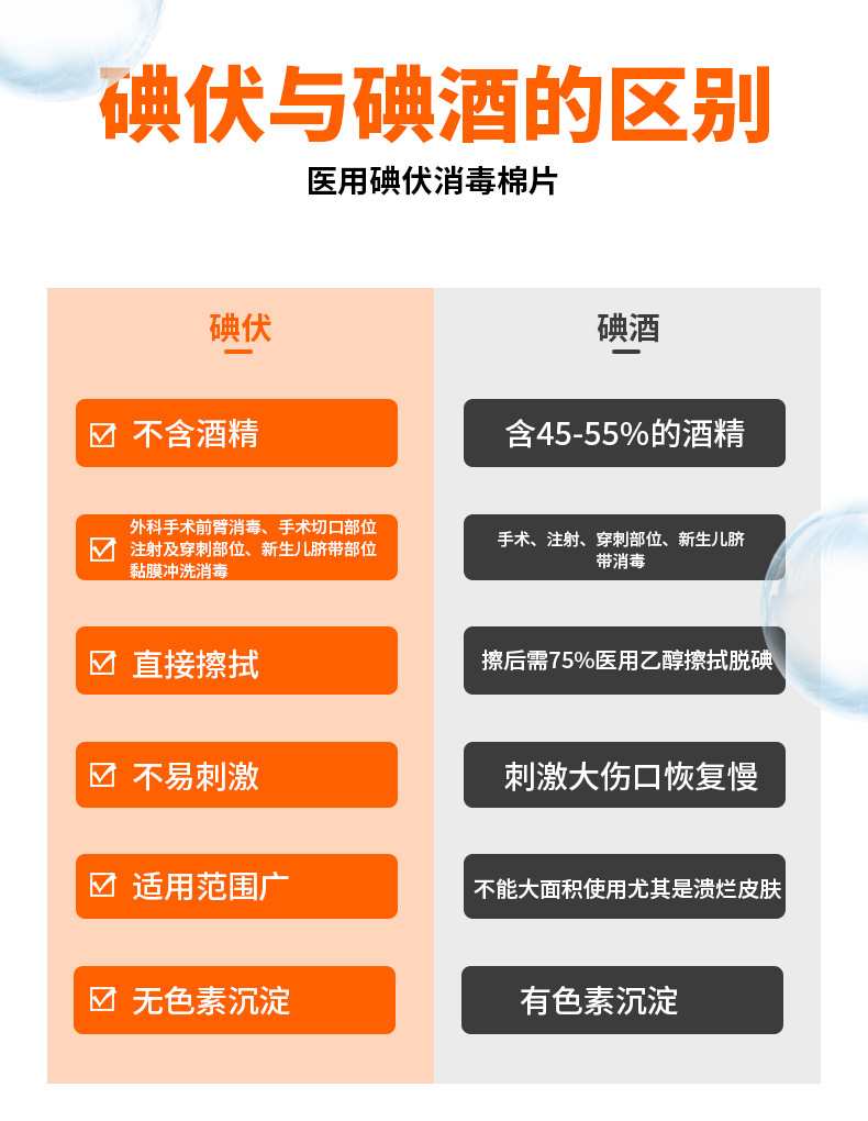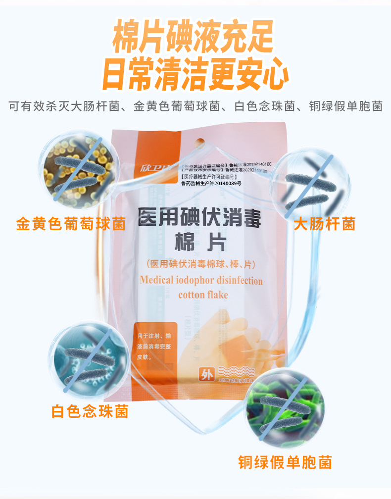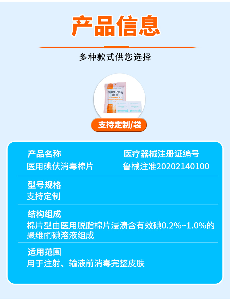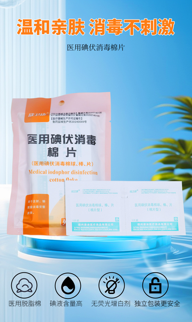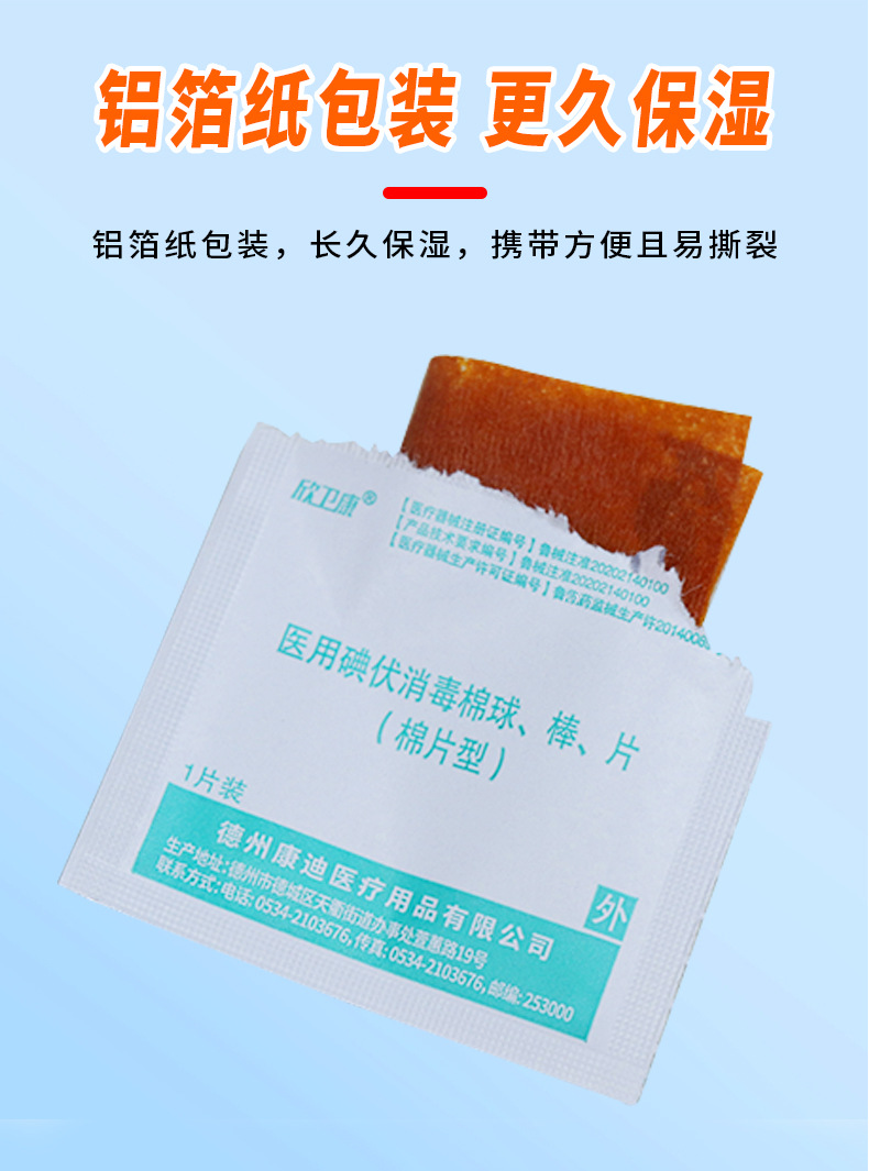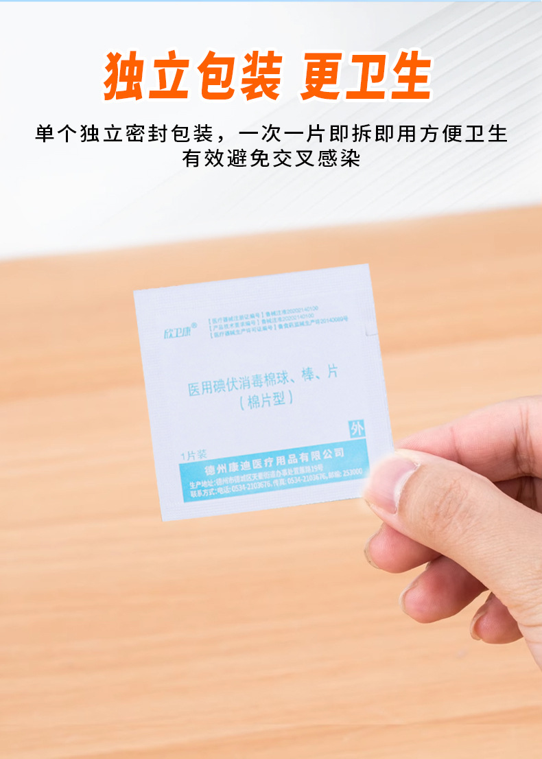 医用碘伏消毒棉片伤口杀菌清洁消毒片户外一次性医用碘伏消毒棉片