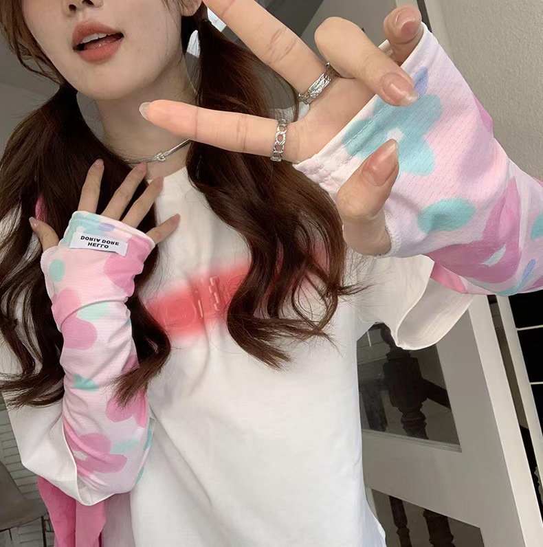 花朵冰袖女2026冰丝袖套春季新款防晒手套防紫外线宽松遮阳护手袖