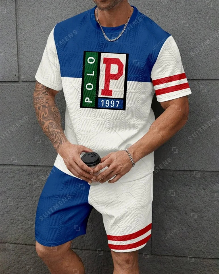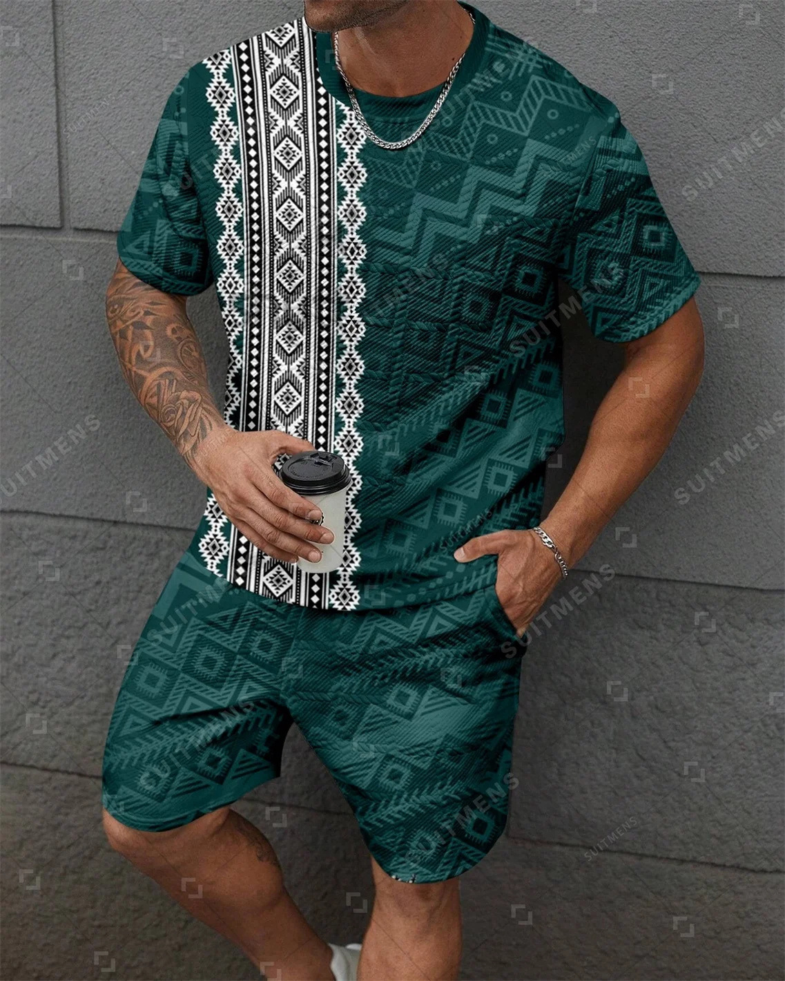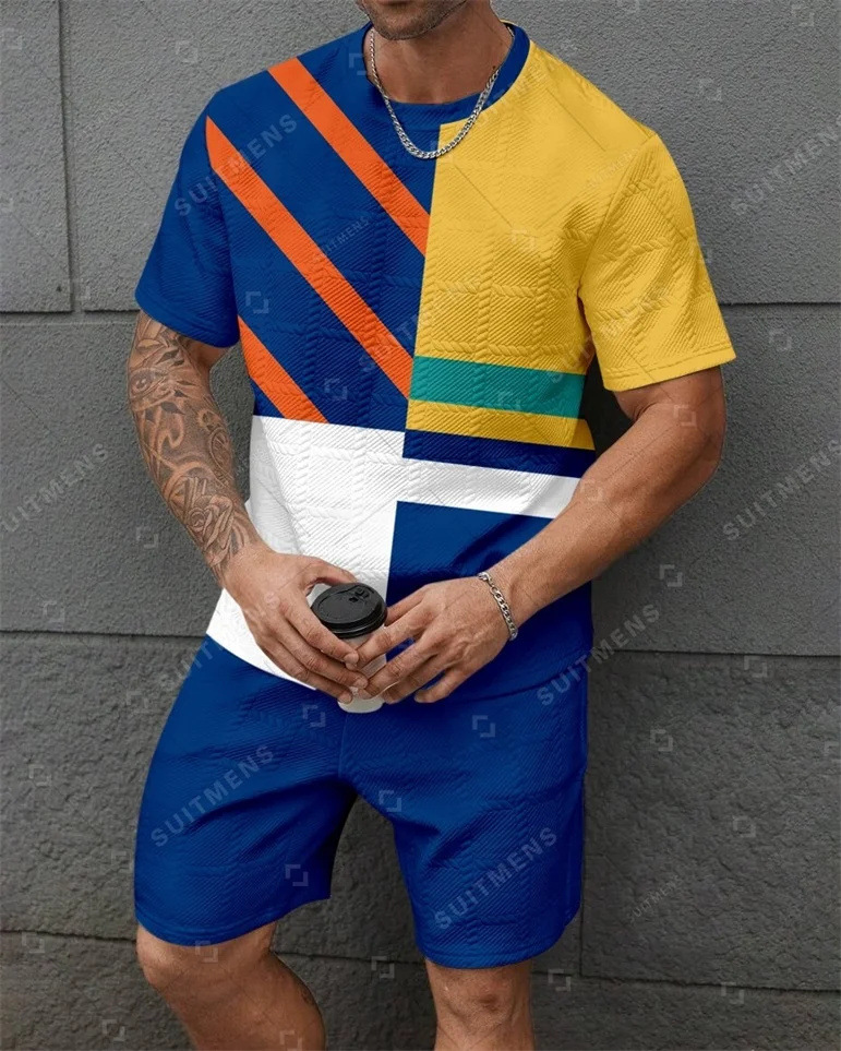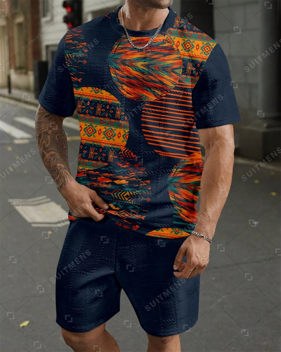 外贸新款3D T恤数码印花复古炫酷短袖套装夏季T恤短裤套装 批发