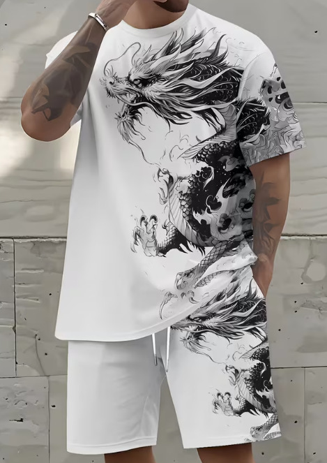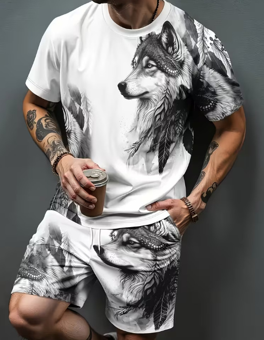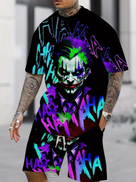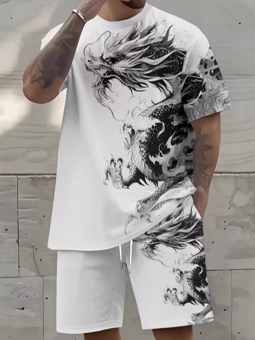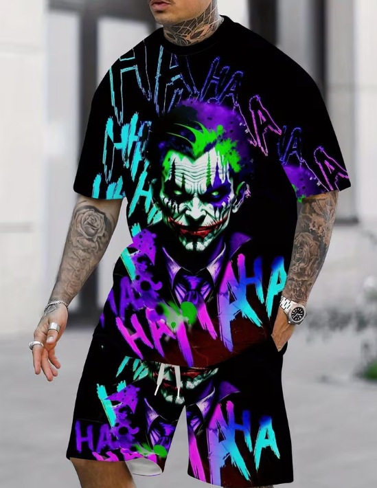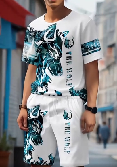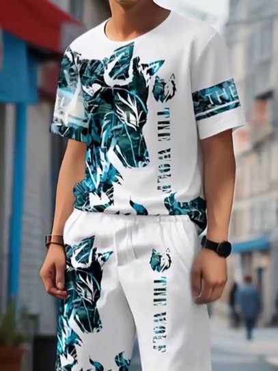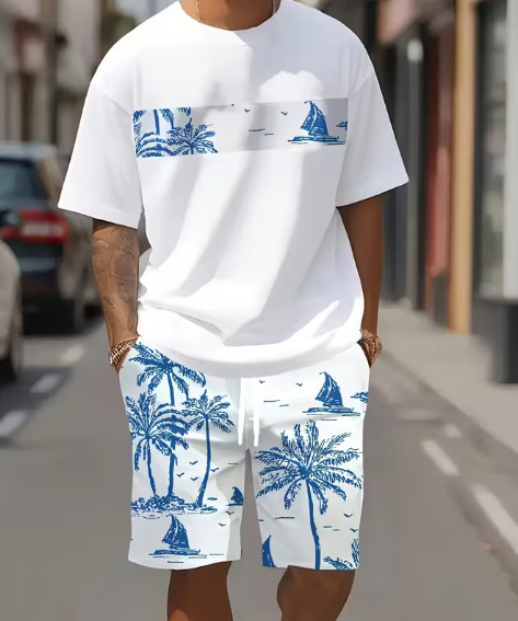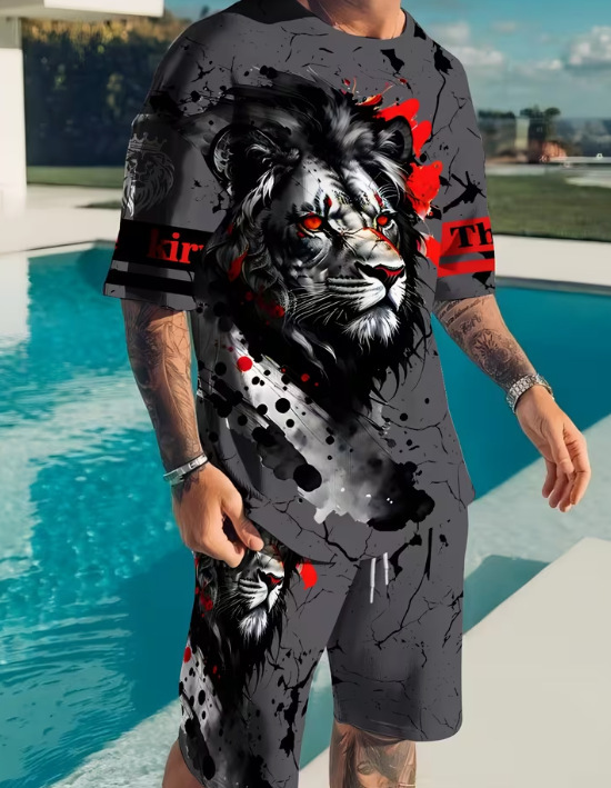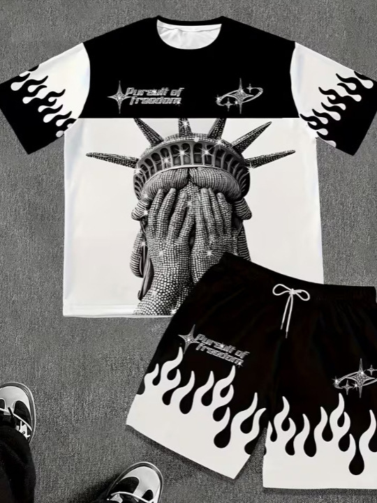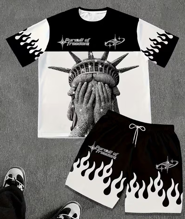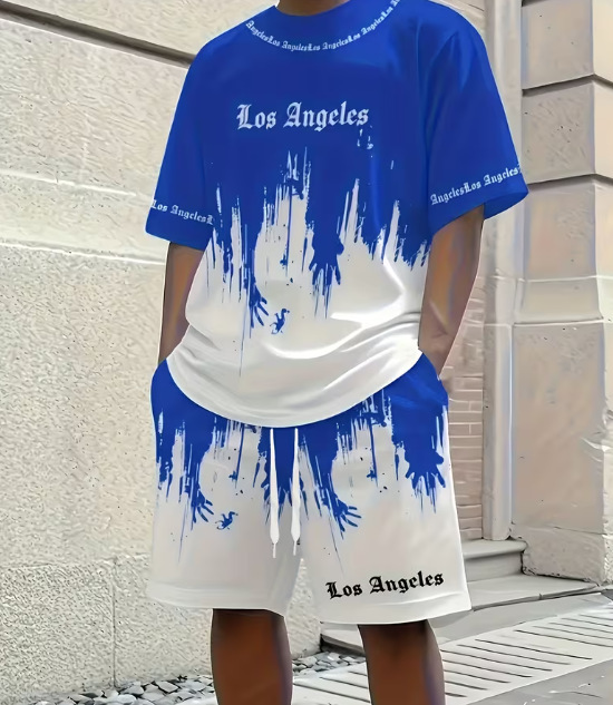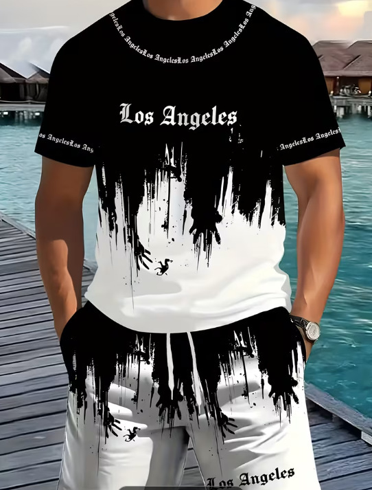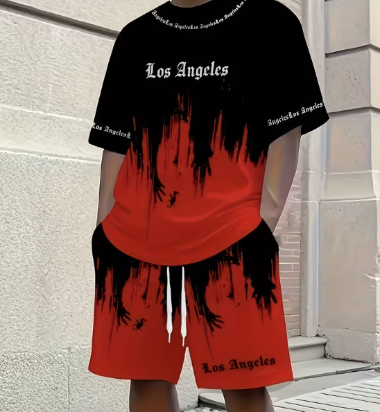 2026跨境男士洛杉矶套装跨境亚马逊潮流T恤短裤套装