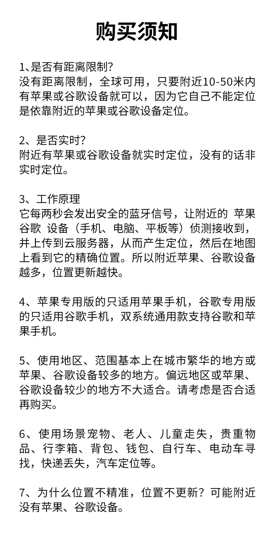 - 包装清单:防丢器、说明书、挂绳、包装盒