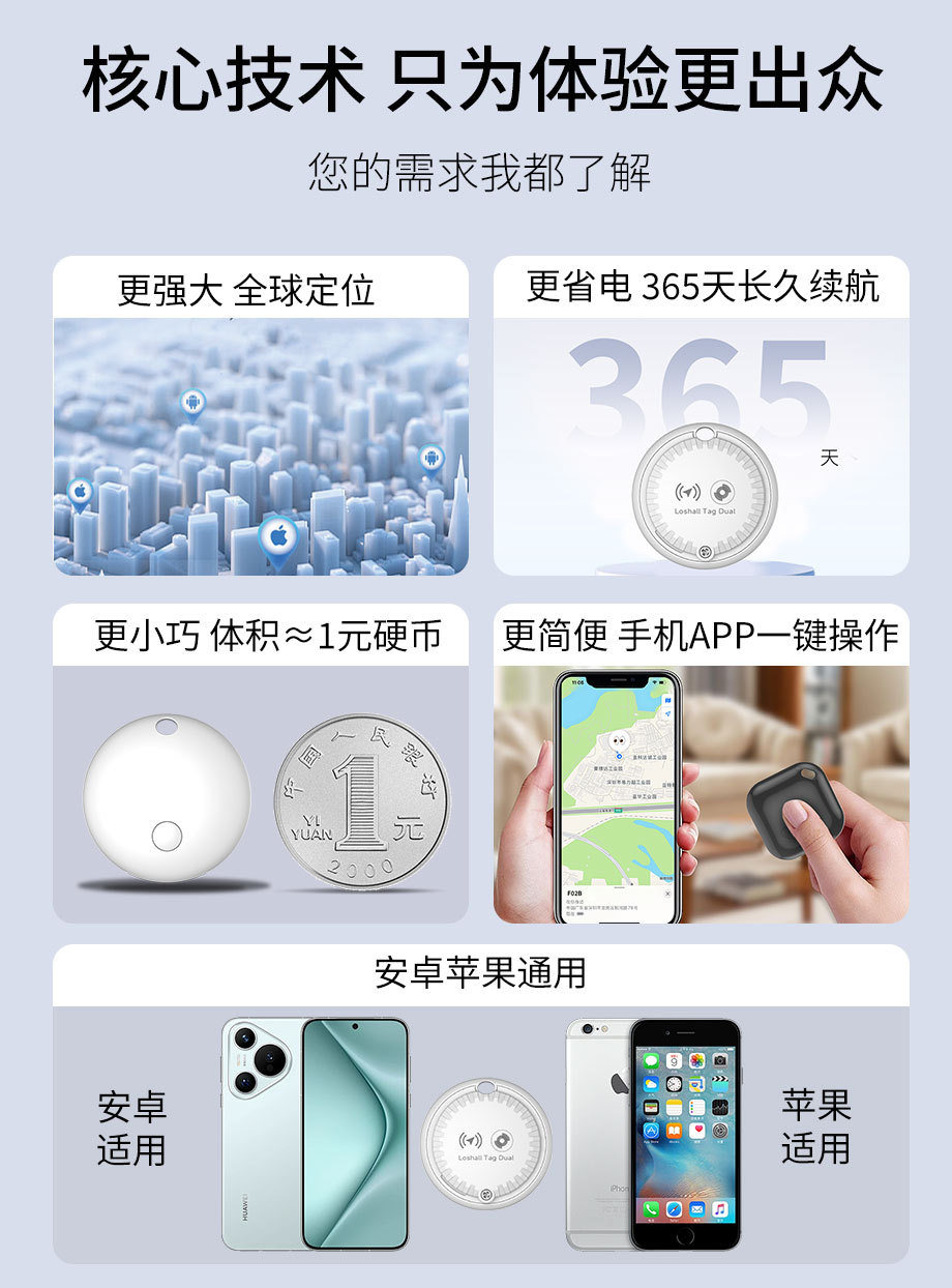 适用安卓苹果防丢器通用双系统长续航小巧便携新款蓝牙定位防丢器