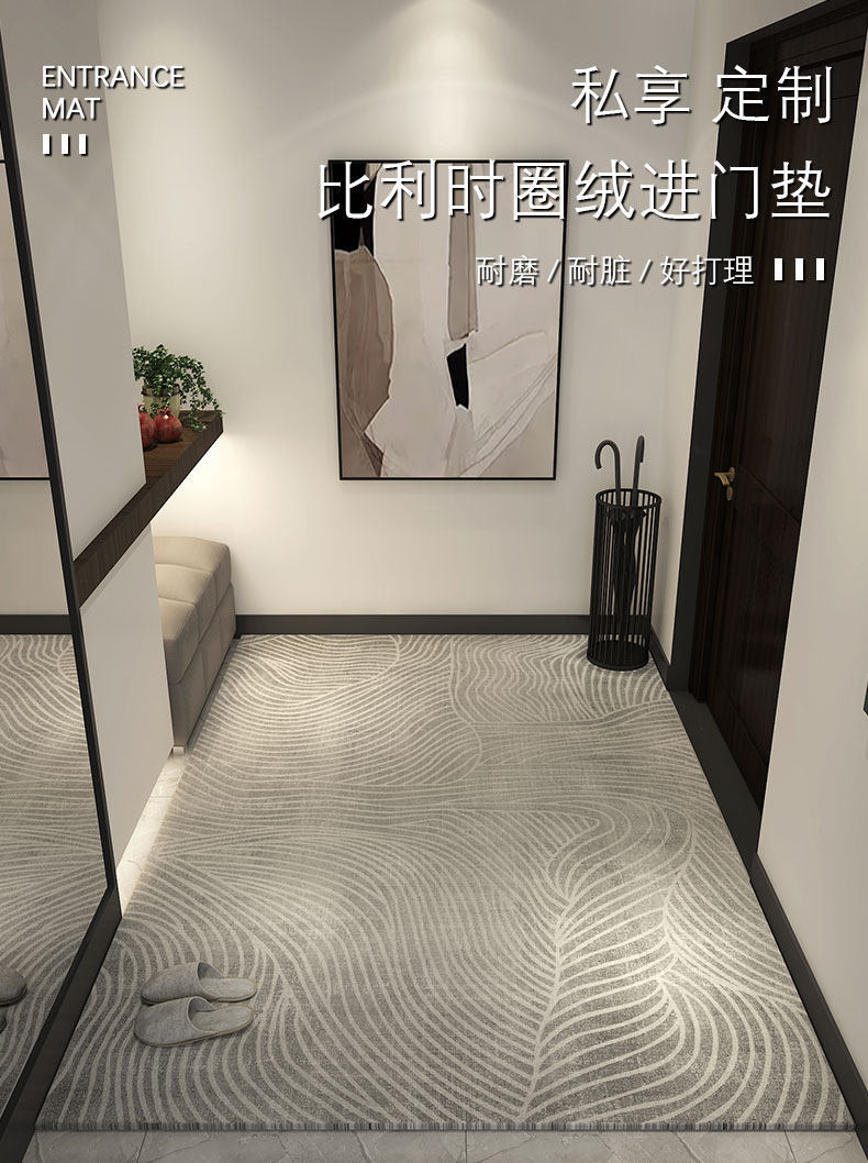 可裁剪抽象条纹垫子家用防滑除尘入户地垫加厚圈绒地毯长方形耐脏