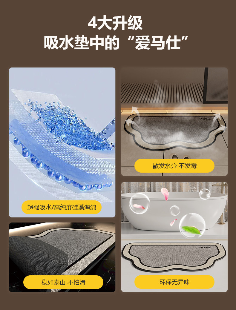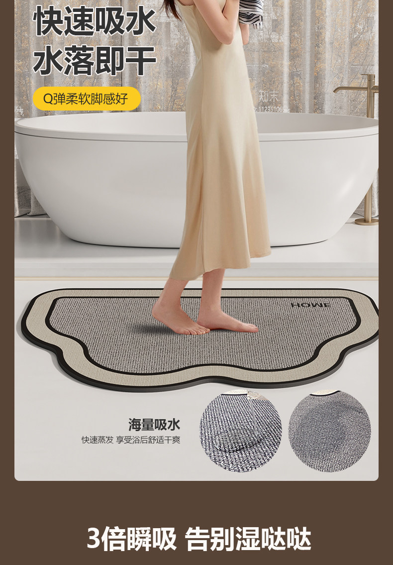 卫生间地垫浴室防滑吸水厕所门口踩脚垫厕所洗手间耐脏地毯硅藻泥