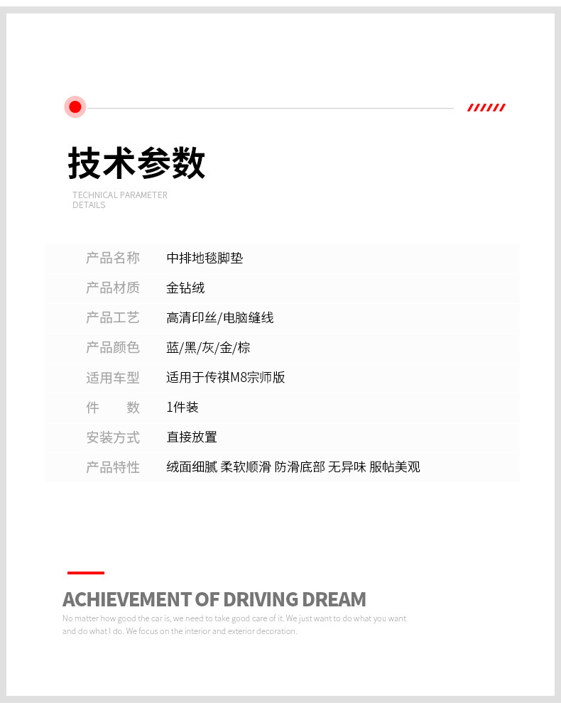 - 规格:【金钻绒】中排地毯【金色传祺宗师标】