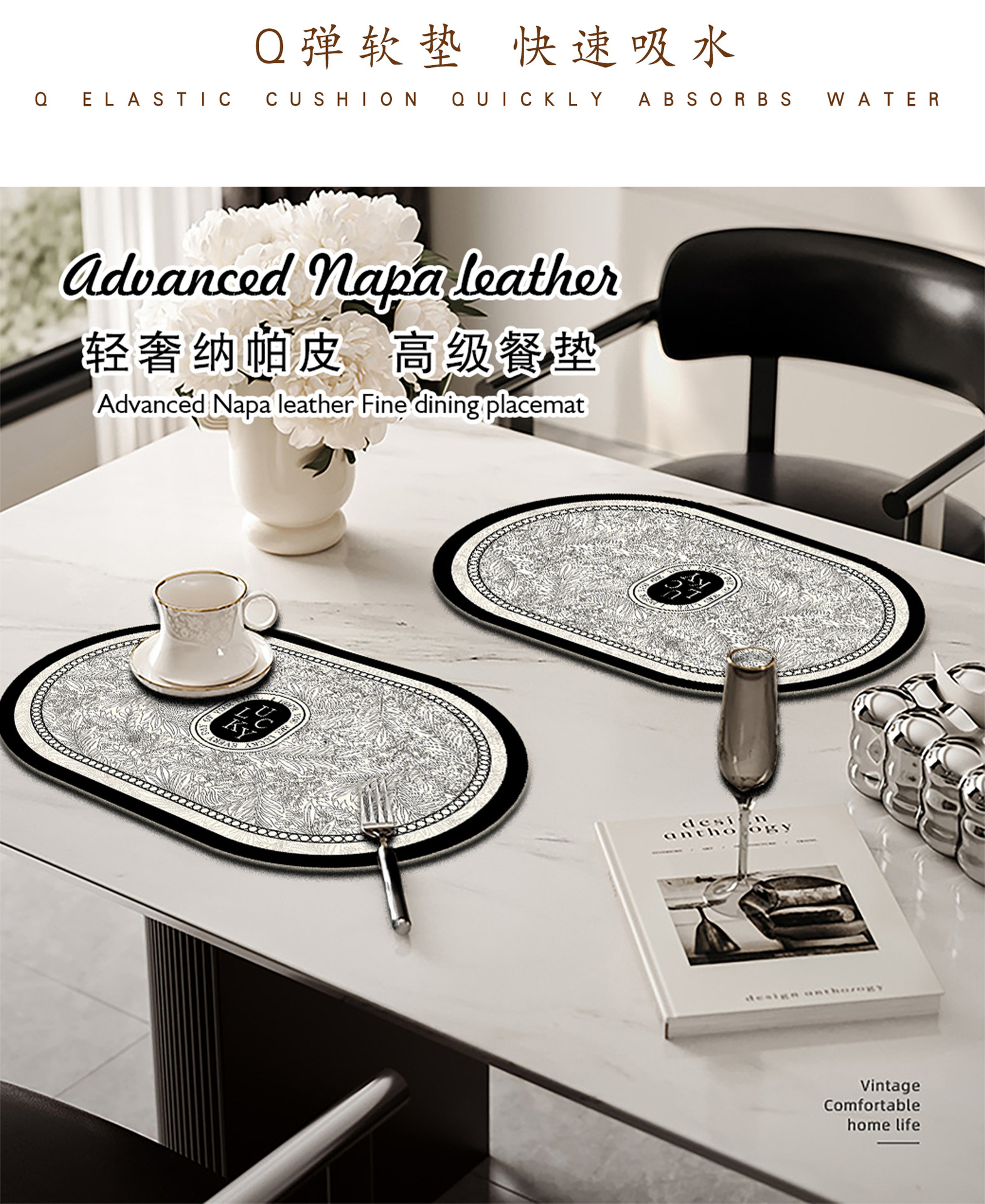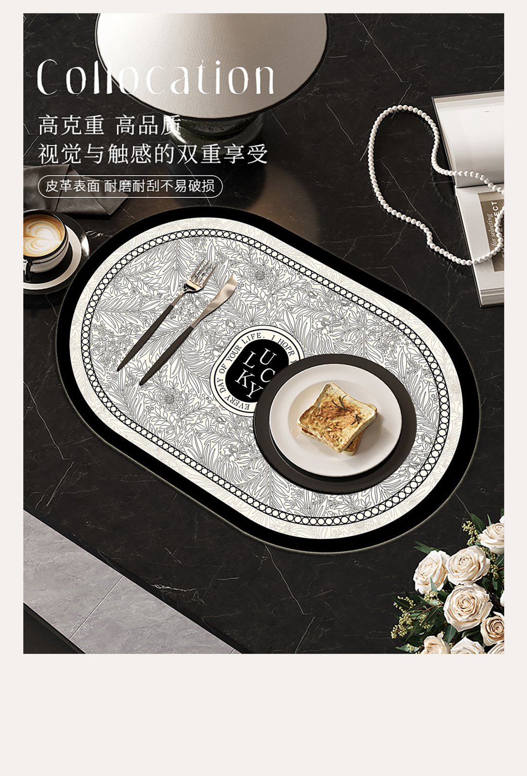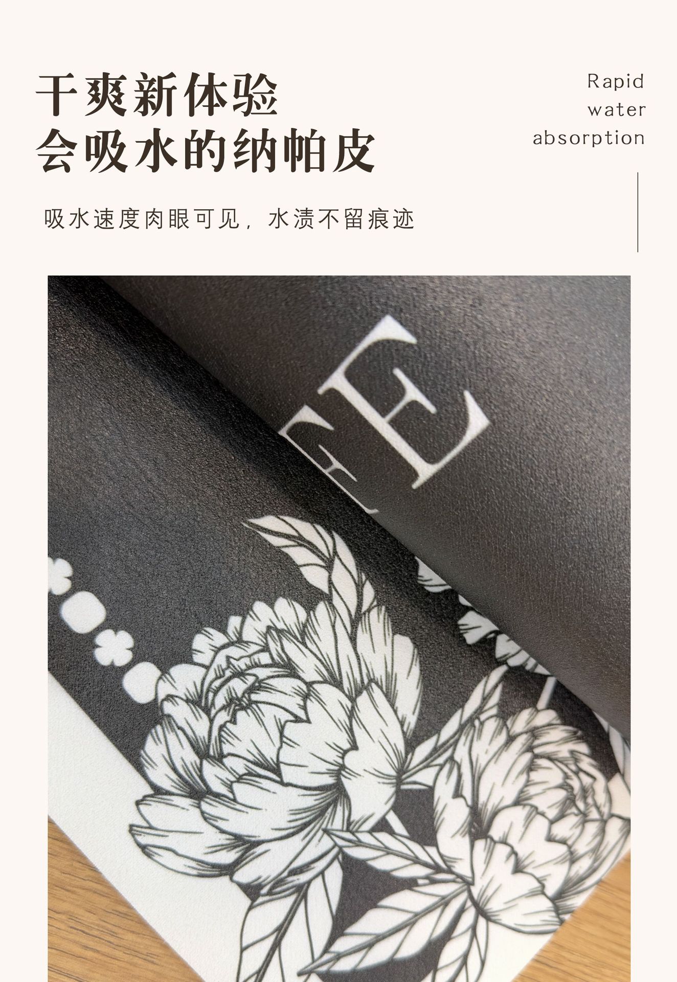 高端厨房沥水垫北欧素描花卉纳帕皮速干垫玄关进门台面轻奢装饰垫