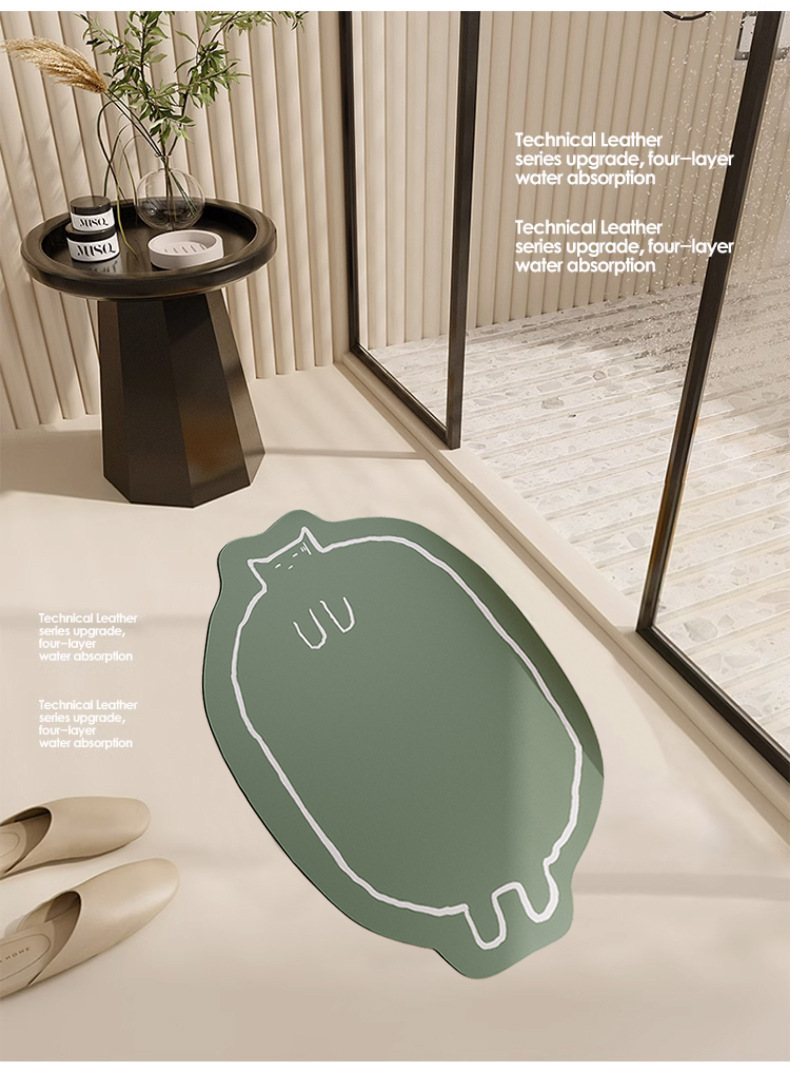 可爱猫咪浴室地垫卫生间洗澡间门垫防滑硅藻泥强吸水防水垫子速干