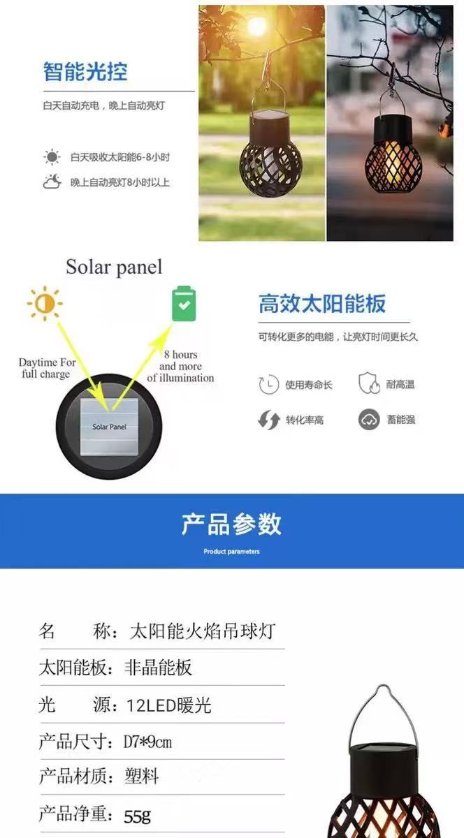 亚马逊直销太阳能火焰灯12LED火把灯庭院装饰太阳能地插灯