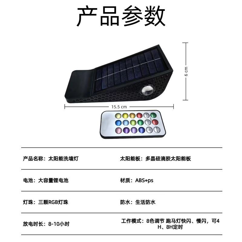 太阳能户外洗墙灯家用照明路灯花园阳台围墙壁灯氛围装饰庭院射灯