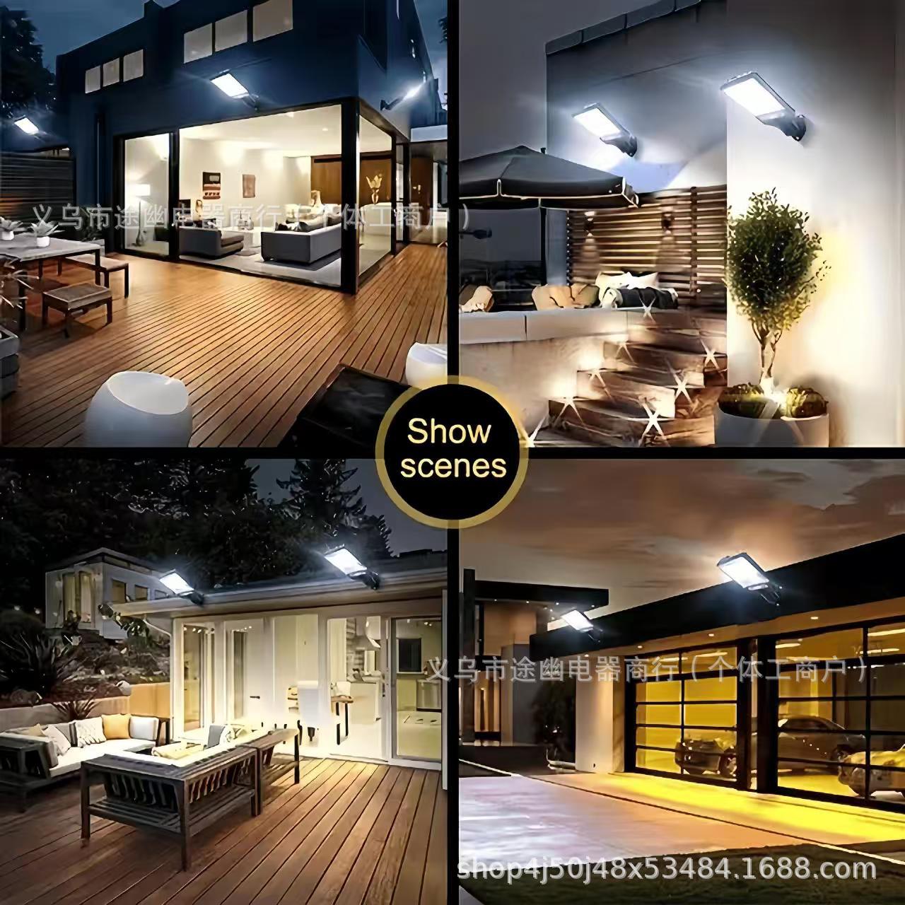 跨境户外太阳能路灯新款人体感应庭院灯带遥控LED壁灯 防水花园灯