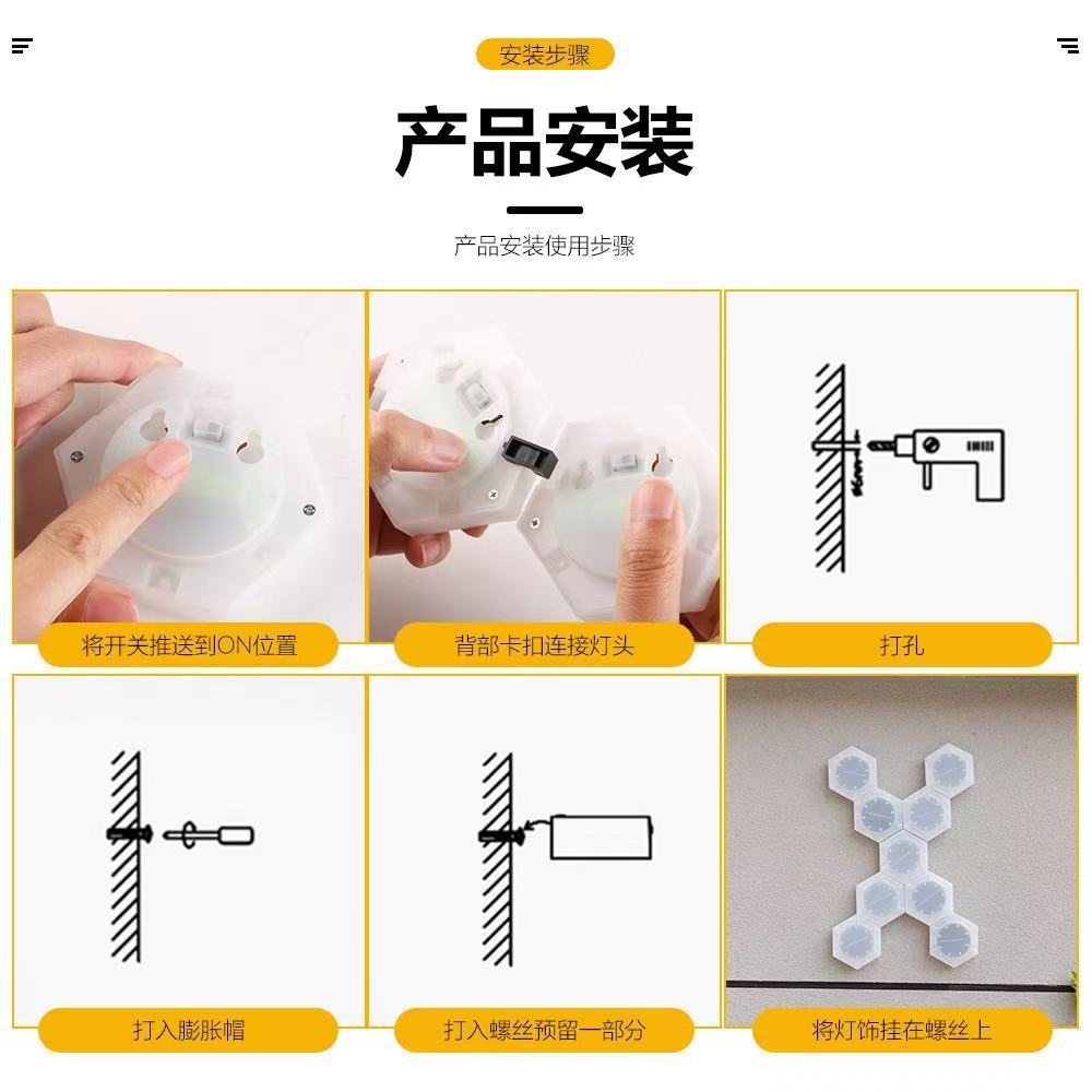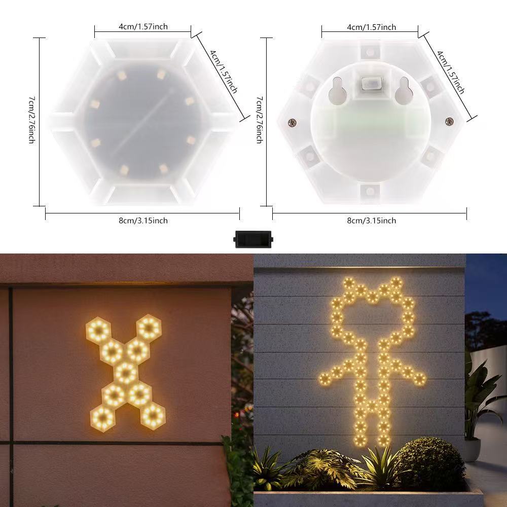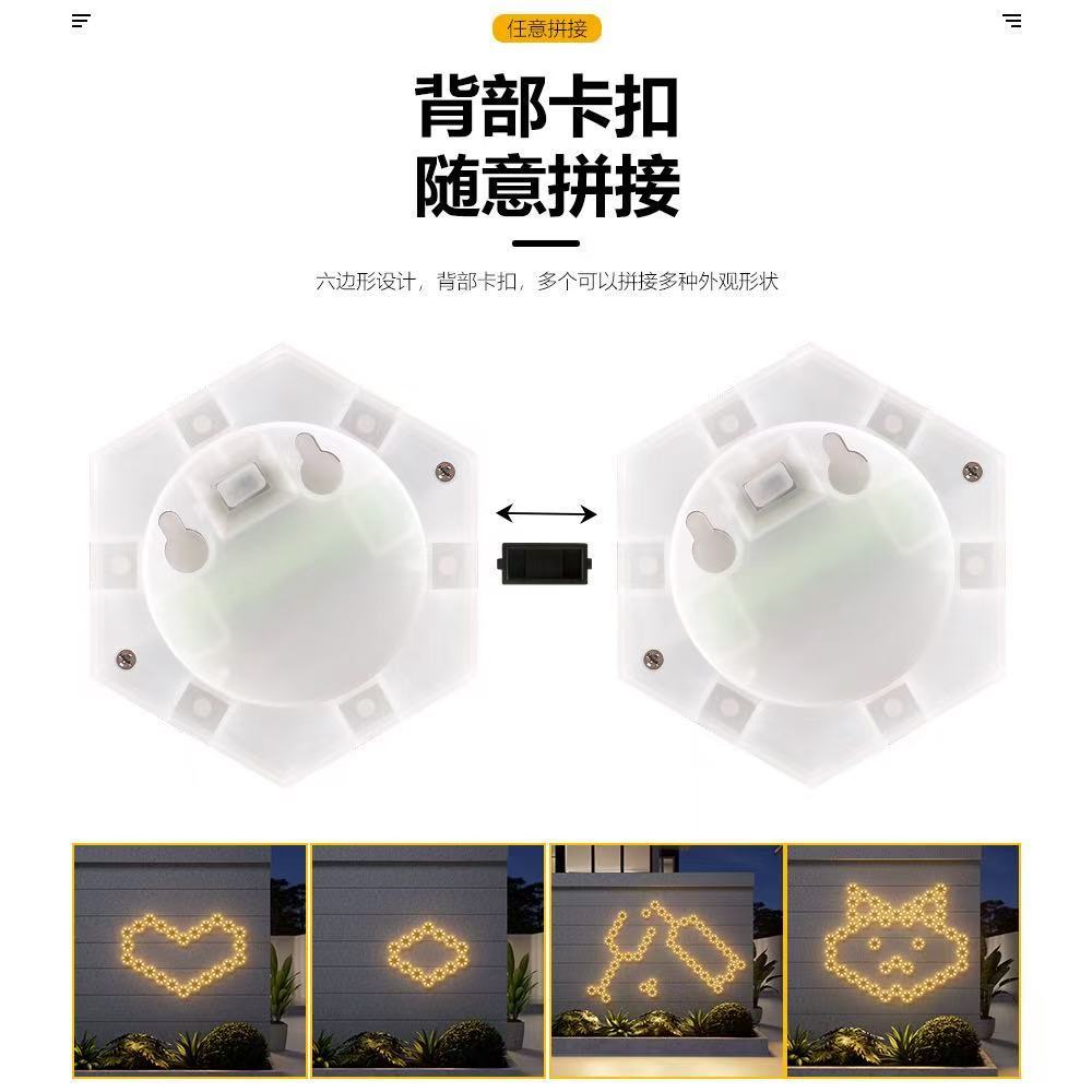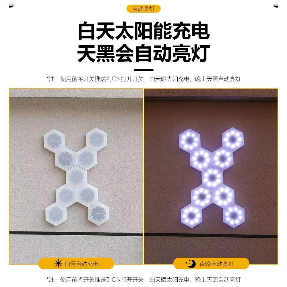 跨境新款太阳能LED拼接壁灯DIY蜂窝灯户外防雨庭院景观灯背景墙灯