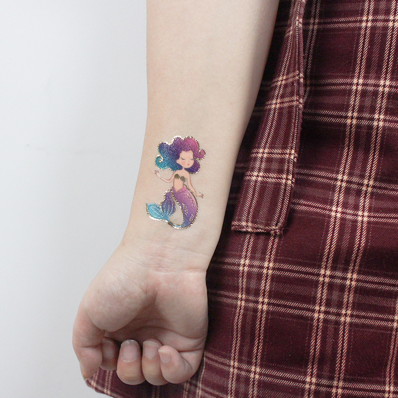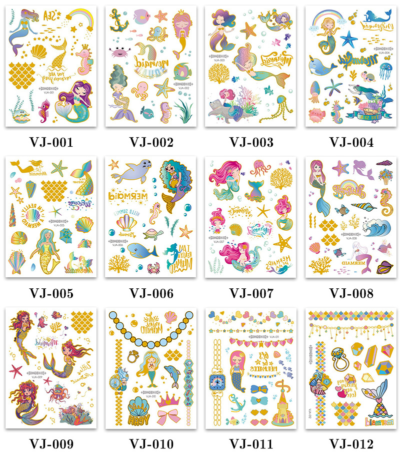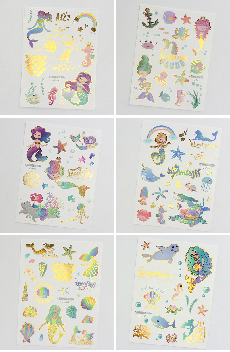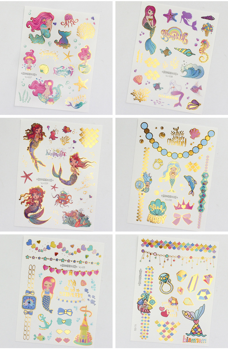 新款跨境货源防水烫金美人鱼纹身贴纸 可爱卡通儿童纹身贴 tattoo