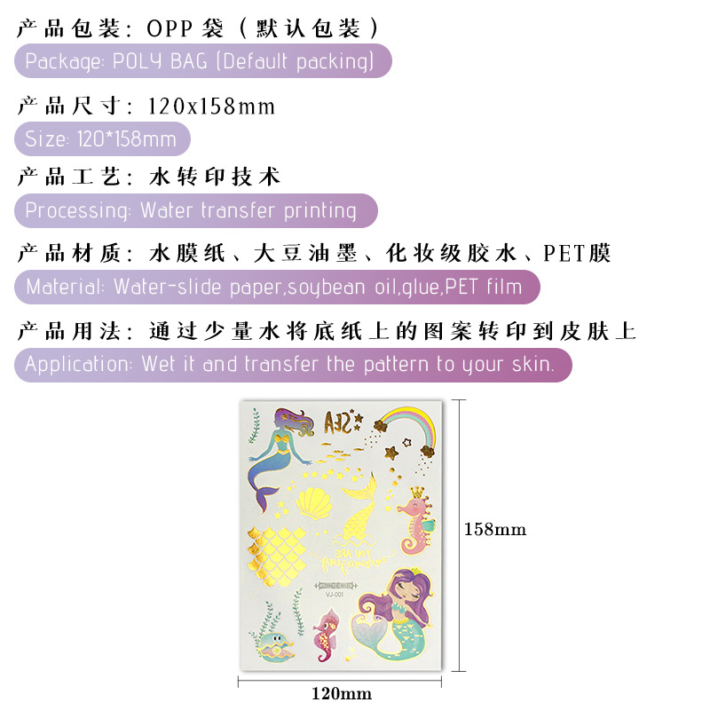 - 货号:VJ烫金美人鱼纹身贴